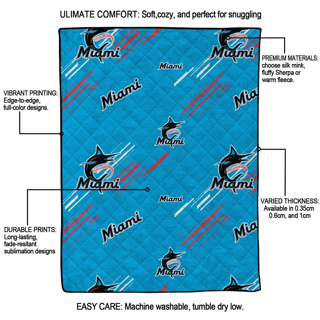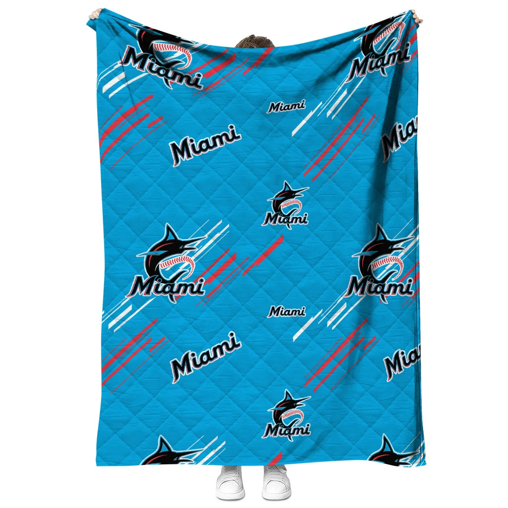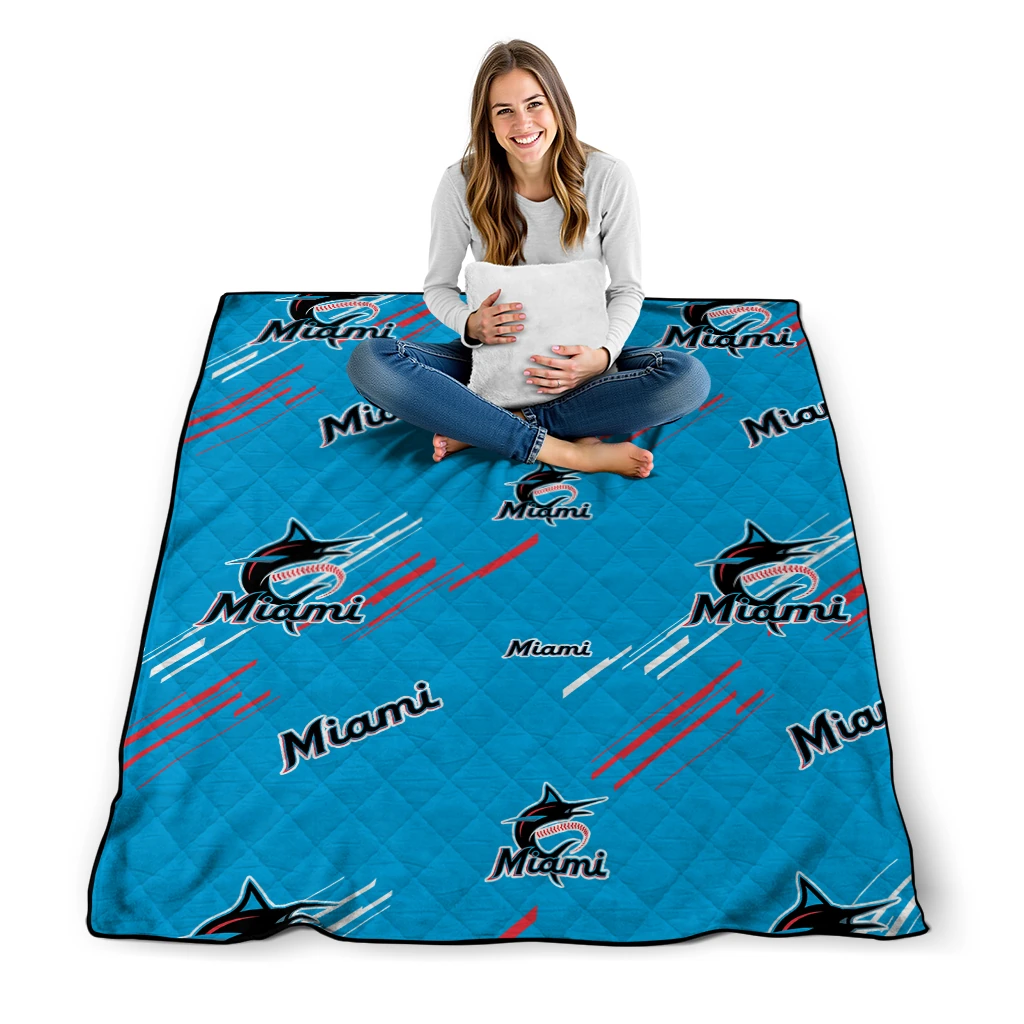 Miami Marlins Sketch Lines Blue Quilt Blanket