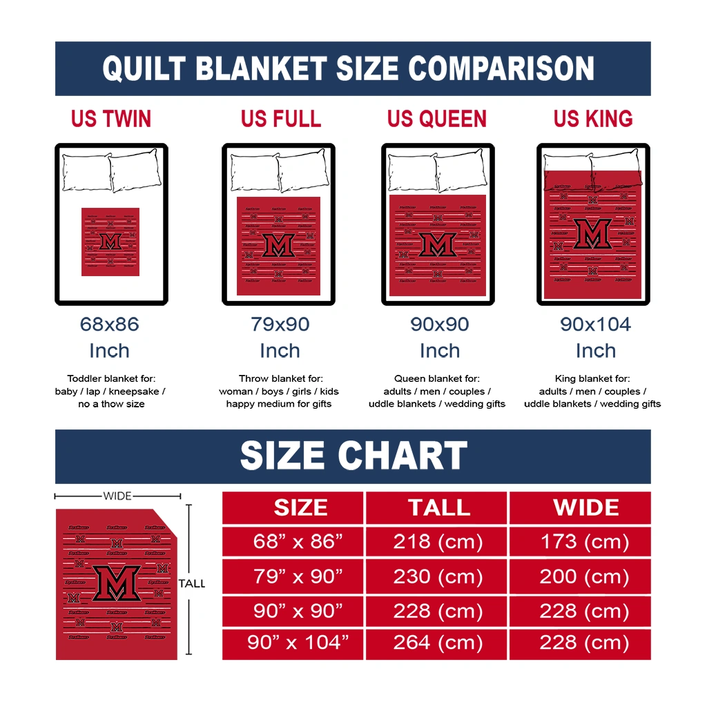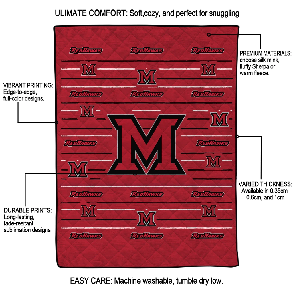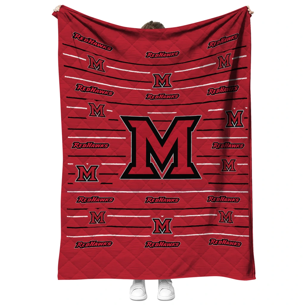 Miami RedHawks Handdrawn Stripes Red Quilt Blanket
