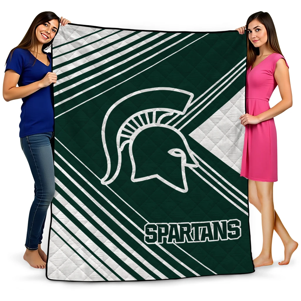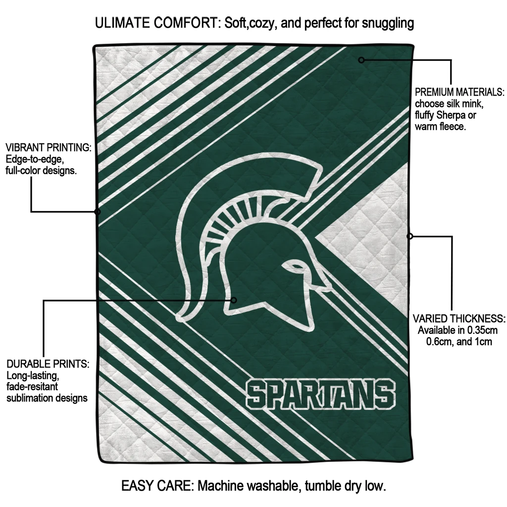 Wrap yourself in warmth and pride with the Michigan State Spartans Arrow Layers Green Quilt Blanket from the Michigan State Spartans Blankets collection at Yes That Blanket. Made from 100% premium quilting-weight polyester blended with a touch of microfiber, this quilt offers a smooth, soft finish you’ll love. Choose between two quilting styles—Stipple or Diagonal—and enjoy the comfort of a cotton-filled layer inside that adds extra coziness for every season. The border is available in classic black or white, giving your design a clean, timeless edge.