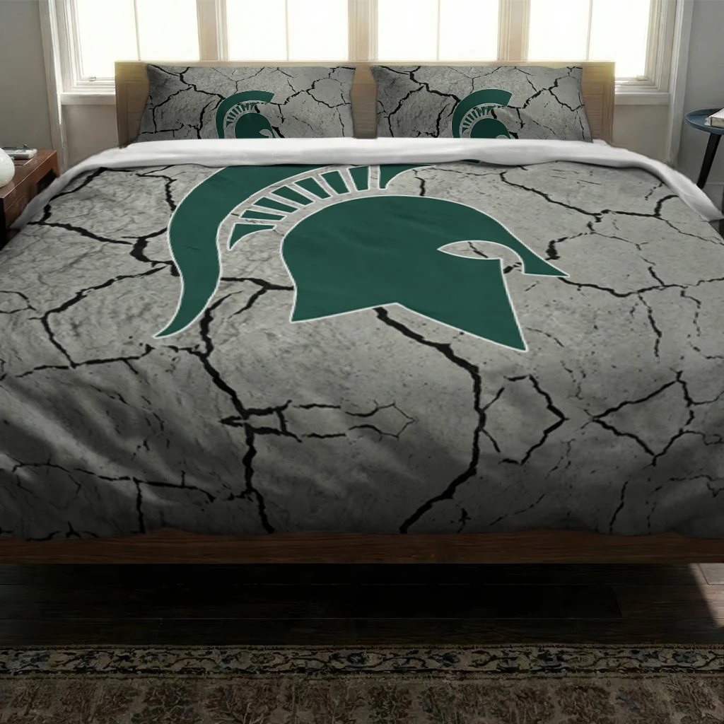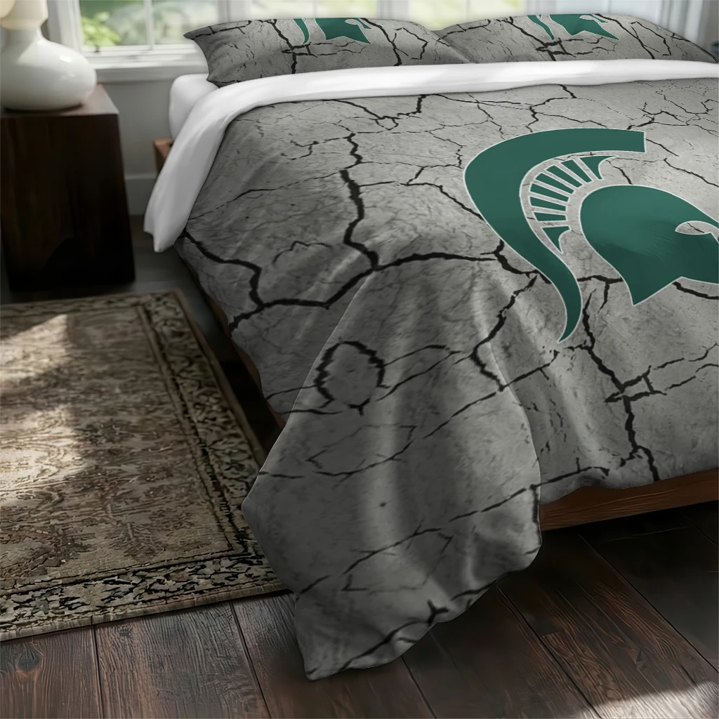 Michigan State Spartans Bedding Set – Cracked Texture Gray Green