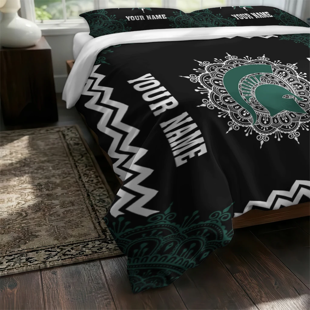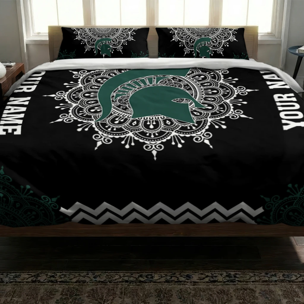 Michigan State Spartans Bedding Set – Customized Mandala Lacework Black Green