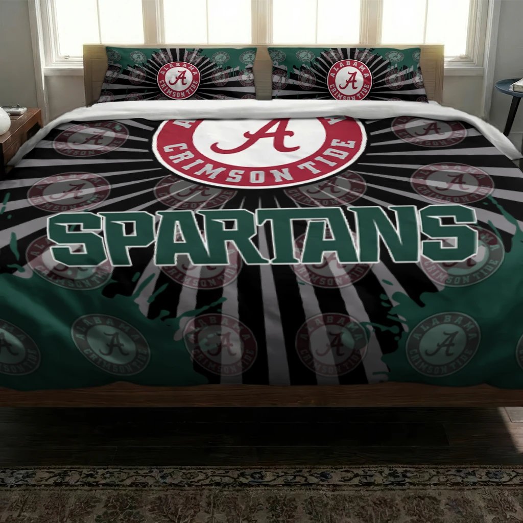 Michigan State Spartans Bedding Set – Sunburst Splatter Green Black