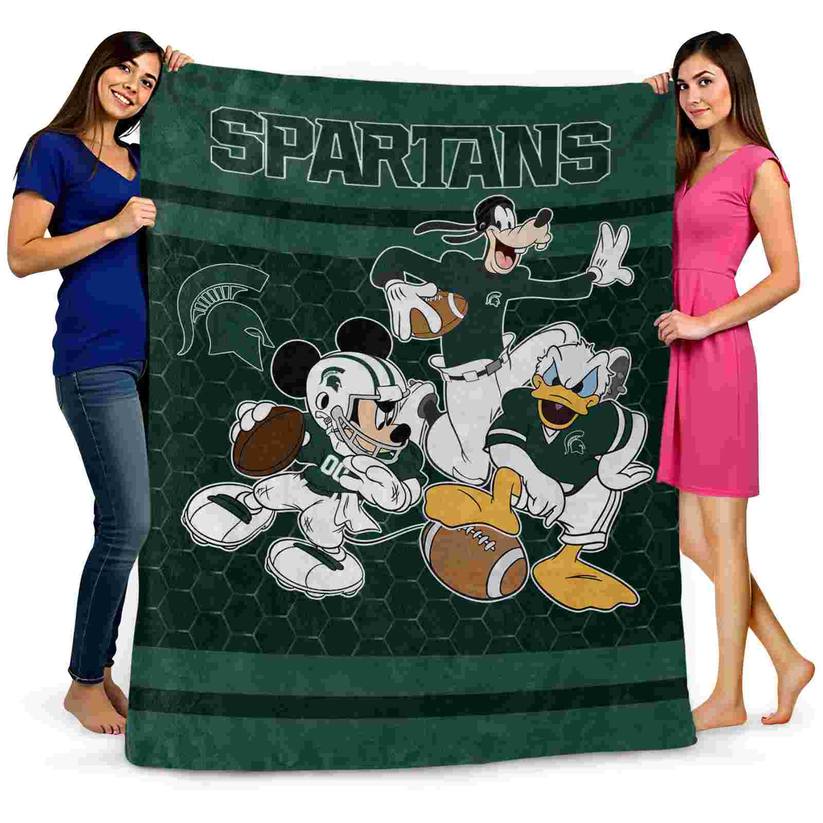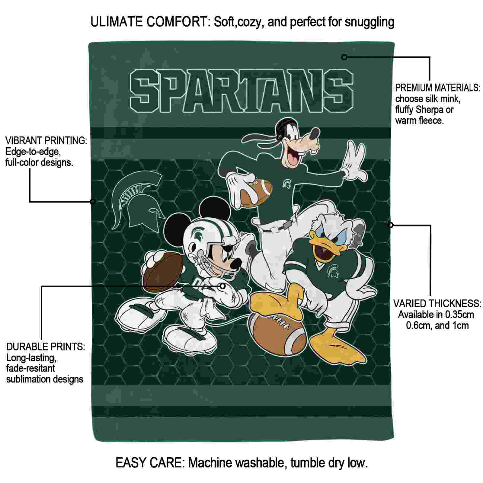 Without a doubt, the Michigan State Spartans Three Musketeers Green Blanket from Michigan State Spartans Blankets collection is offering true fans a chance to showcase passion in a cool way. Personalize it with your favorite team’s logo or a meaningful name to make it uniquely yours. Isn’t that great? The full-color print ensures vibrant, edge-to-edge designs, bringing your sports enthusiasm to life!