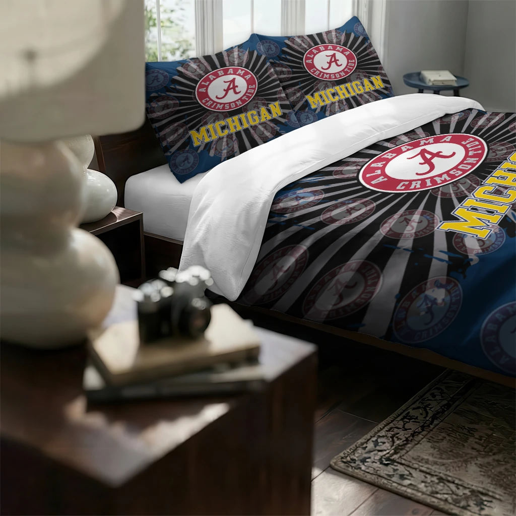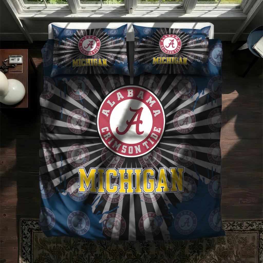 Michigan Wolverines Bedding Set – Sunburst Splatter Blue Black