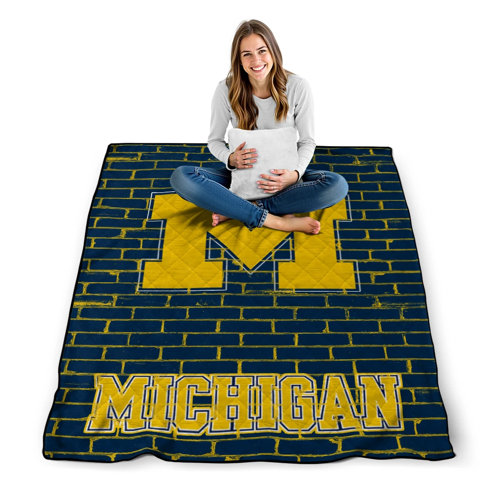 Michigan Wolverines Brick Grid Blue Quilt Blanket