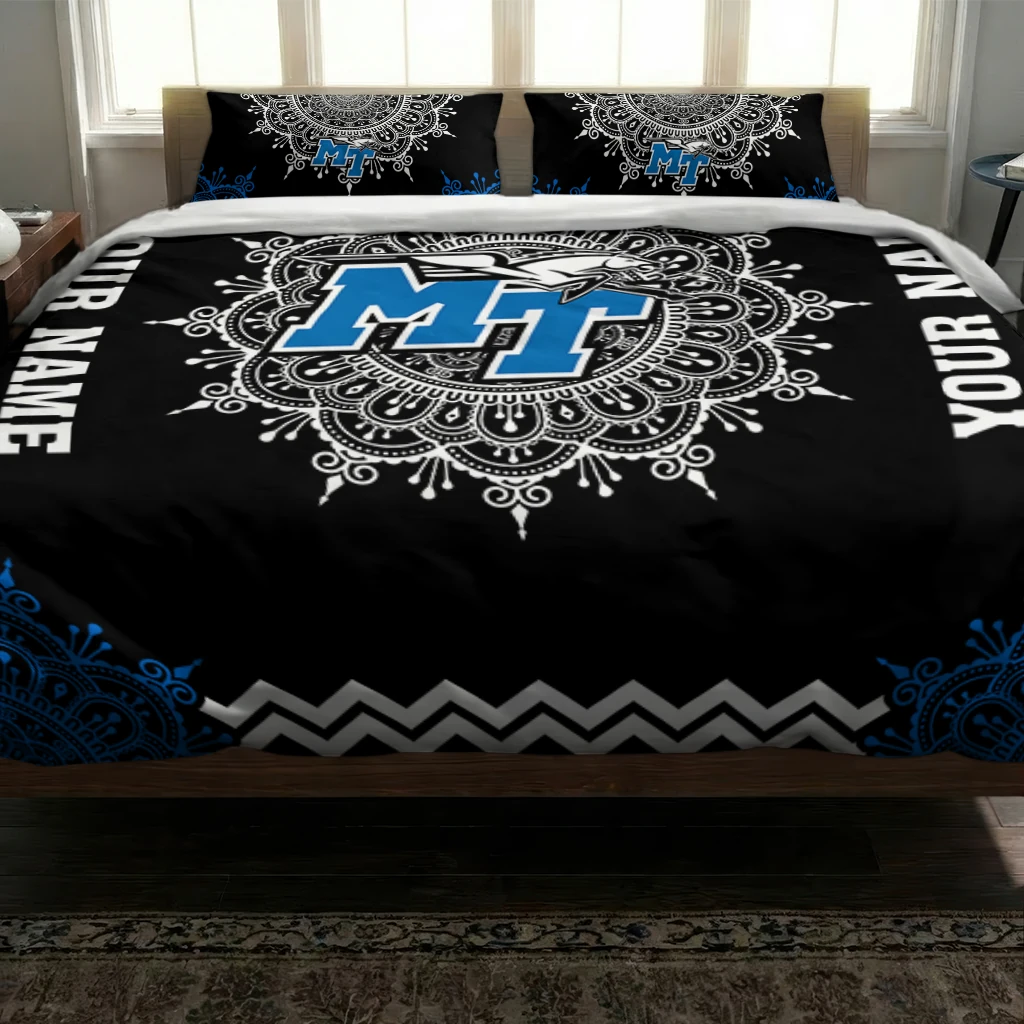 Middle Tennessee Blue Raiders Bedding Set – Personalized Mandala Lacework Black Blue