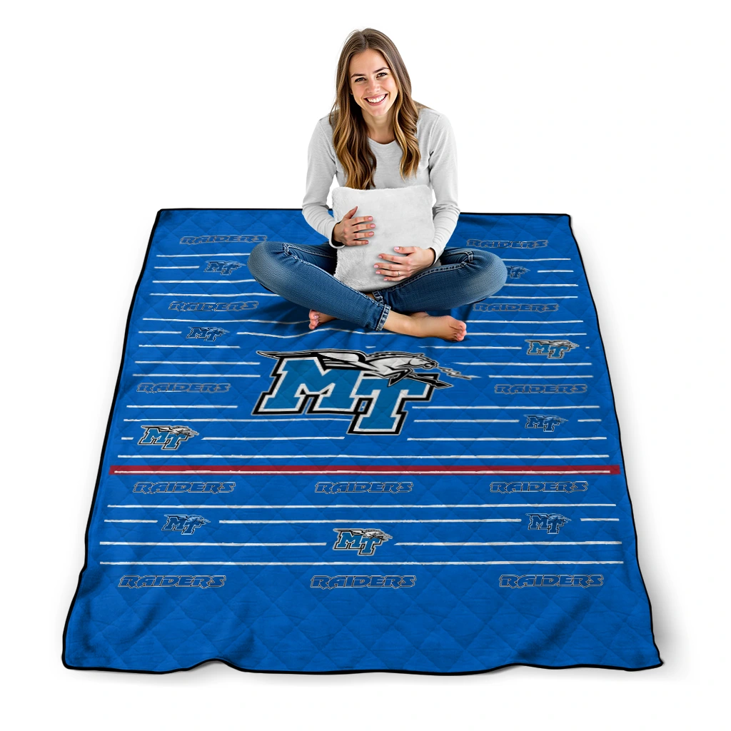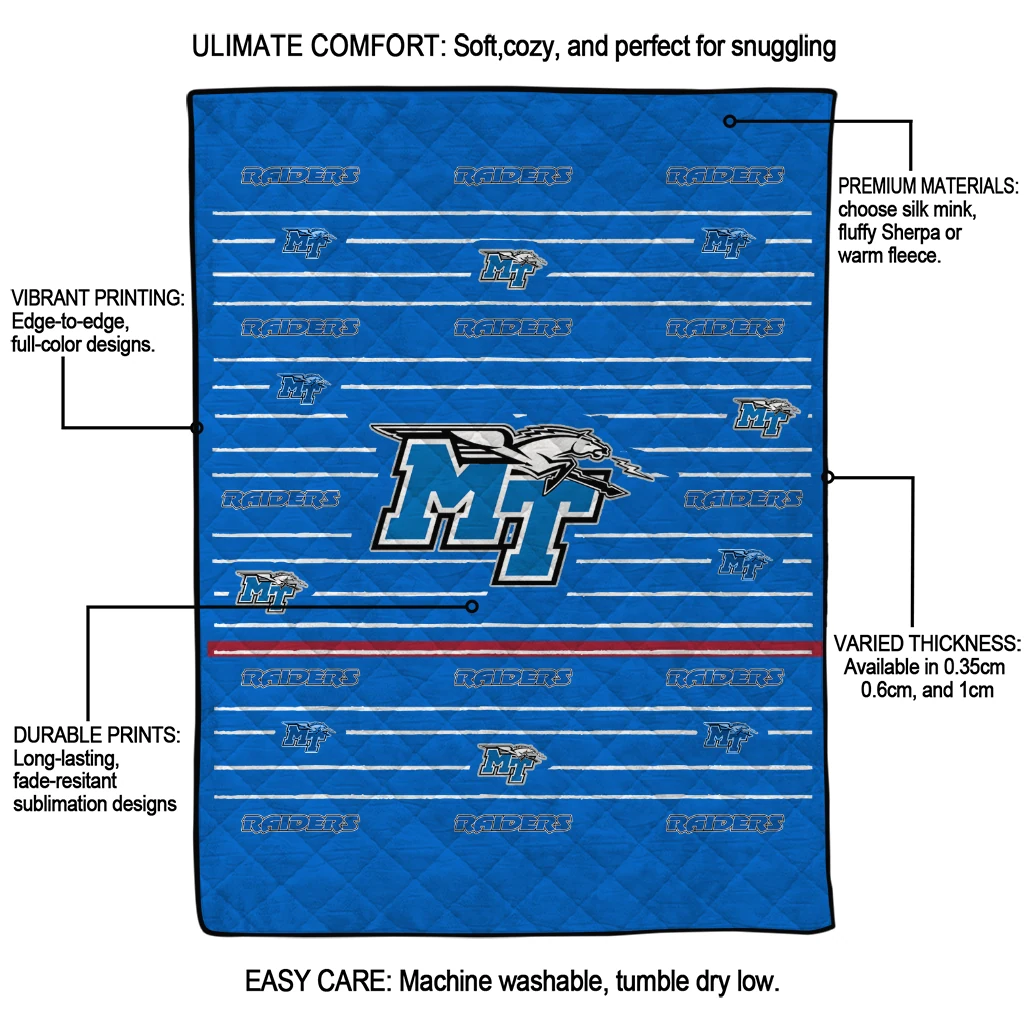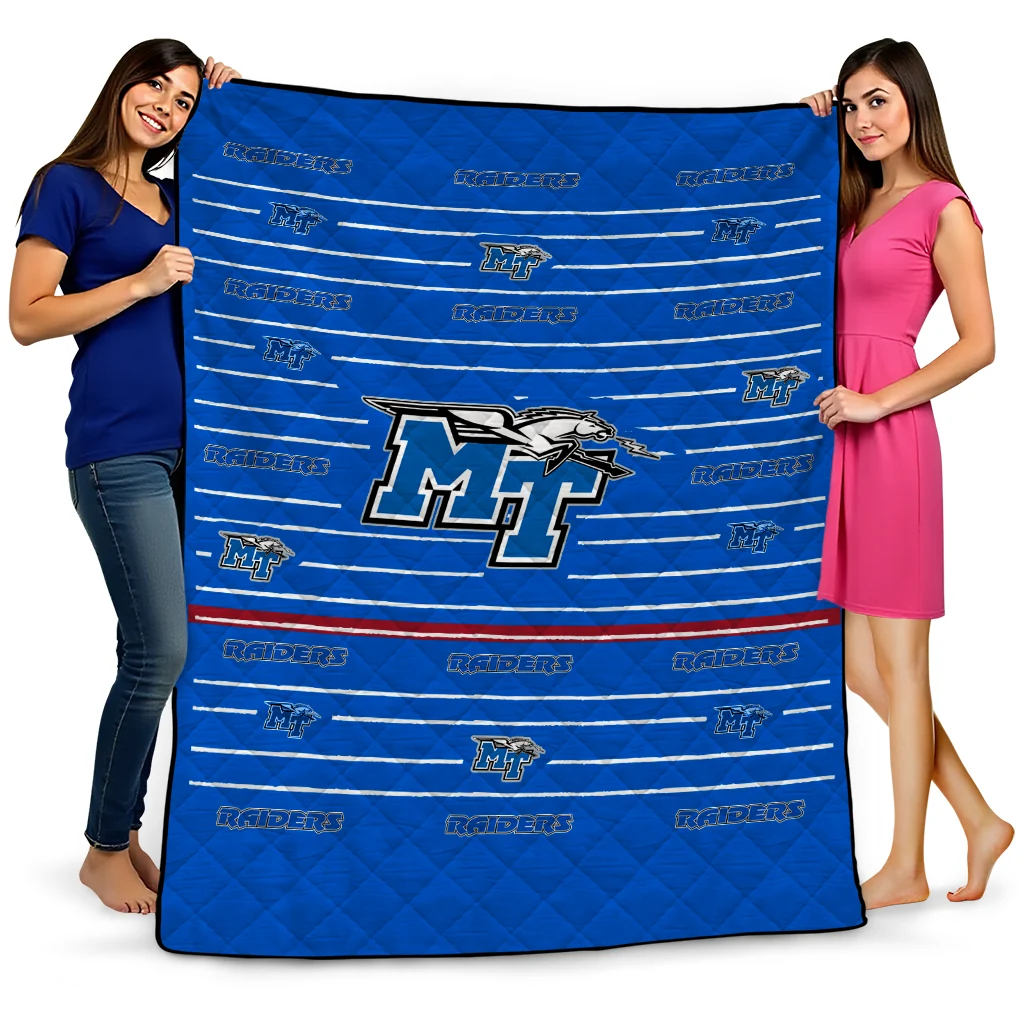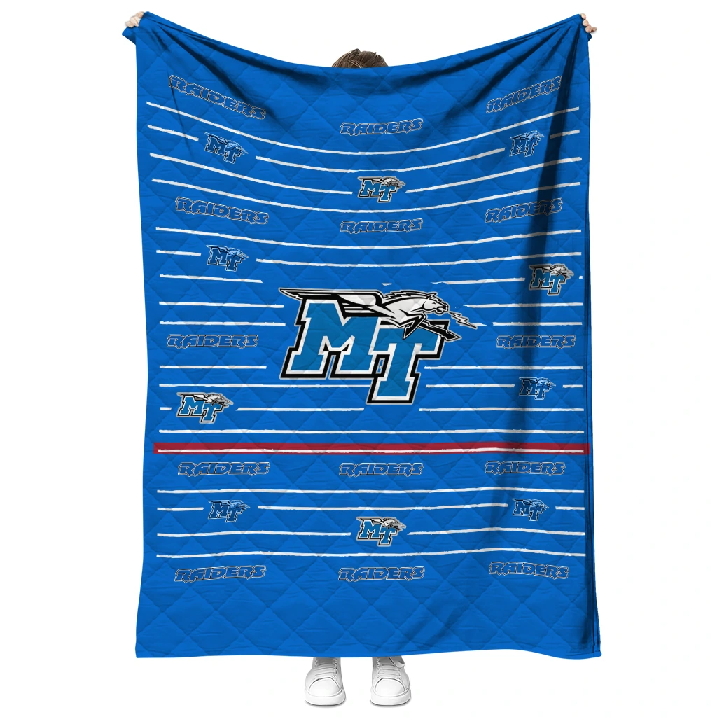 Middle Tennessee Blue Raiders Handdrawn Stripes Blue Quilt Blanket
