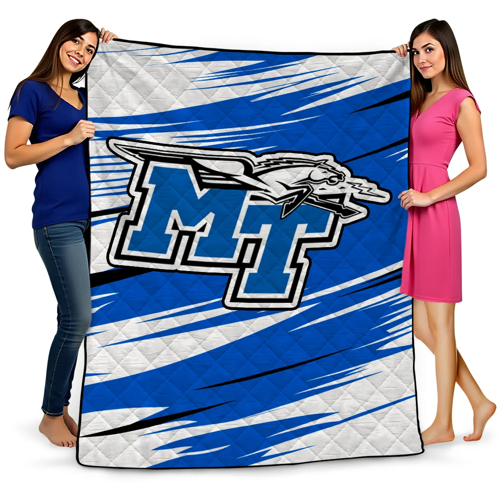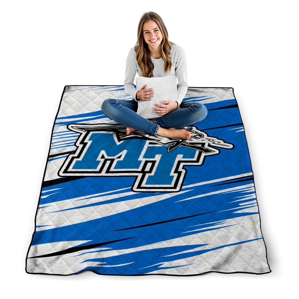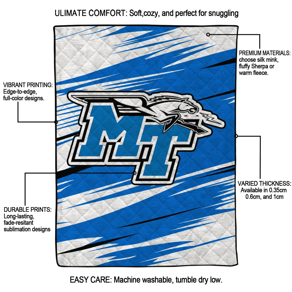 Middle Tennessee Blue Raiders Wild Lines Blue White Quilt Blanket