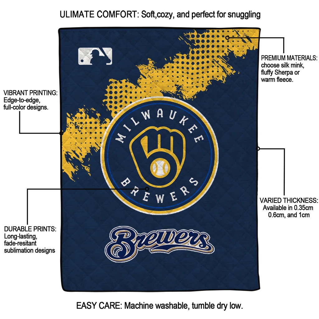 Wrap yourself in warmth and pride with the Milwaukee Brewers League Patch Navy Blue Quilt Blanket from the Milwaukee Brewers Blankets collection at Yes That Blanket. Made from 100% premium quilting-weight polyester blended with a touch of microfiber, this quilt offers a smooth, soft finish you’ll love. Choose between two quilting styles—Stipple or Diagonal—and enjoy the comfort of a cotton-filled layer inside that adds extra coziness for every season. The border is available in classic black or white, giving your design a clean, timeless edge.