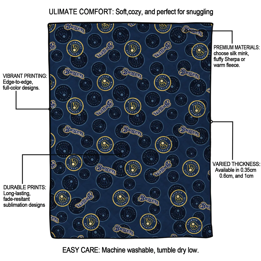 Wrap yourself in warmth and pride with the Milwaukee Brewers Solid Classic Navy Blue Quilt Blanket from the Milwaukee Brewers Blankets collection at Yes That Blanket. Made from 100% premium quilting-weight polyester blended with a touch of microfiber, this quilt offers a smooth, soft finish you’ll love. Choose between two quilting styles—Stipple or Diagonal—and enjoy the comfort of a cotton-filled layer inside that adds extra coziness for every season. The border is available in classic black or white, giving your design a clean, timeless edge.