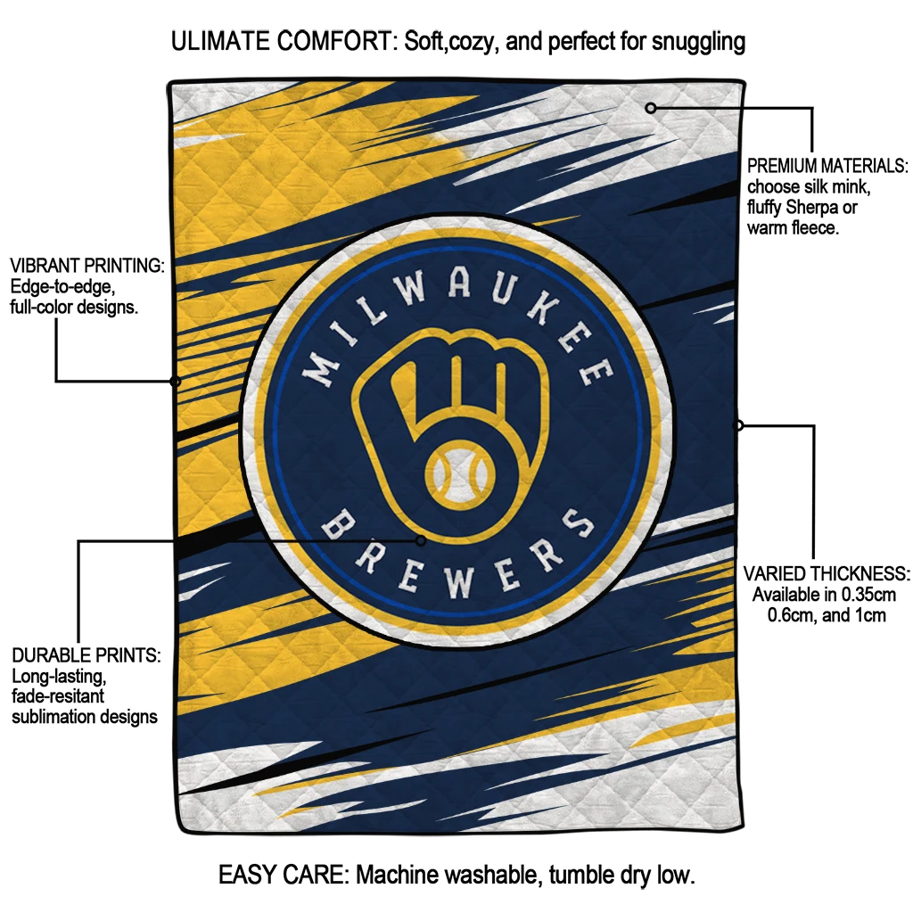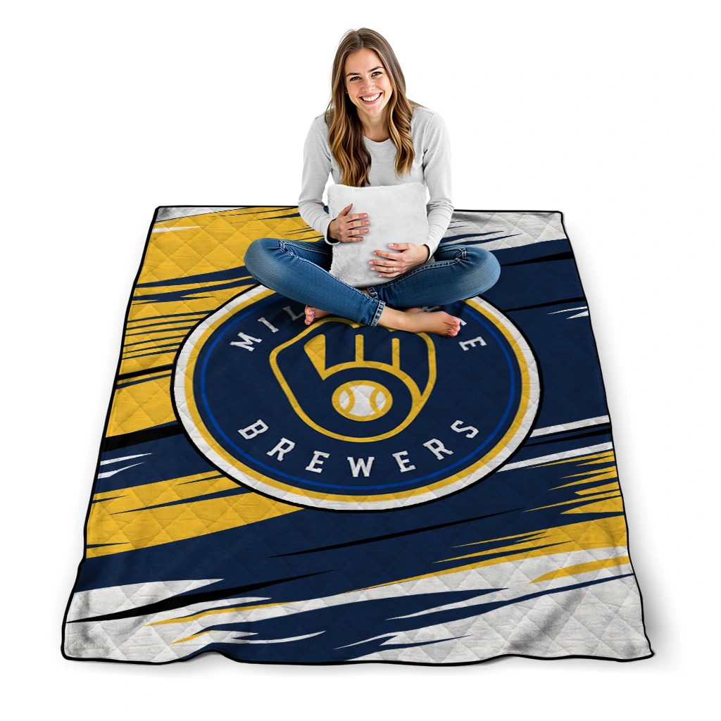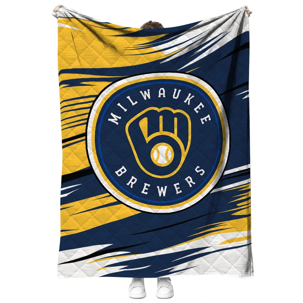 Wrap yourself in warmth and pride with the Milwaukee Brewers Wild Lines Navy Blue White Quilt Blanket from the Milwaukee Brewers Blankets collection at Yes That Blanket. Made from 100% premium quilting-weight polyester blended with a touch of microfiber, this quilt offers a smooth, soft finish you’ll love. Choose between two quilting styles—Stipple or Diagonal—and enjoy the comfort of a cotton-filled layer inside that adds extra coziness for every season. The border is available in classic black or white, giving your design a clean, timeless edge.