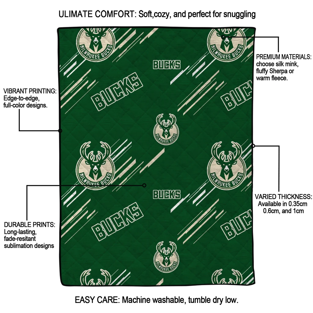 Wrap yourself in warmth and pride with the Milwaukee Bucks Sketch Lines Green Quilt Blanket from the Milwaukee Bucks Blankets collection at Yes That Blanket. Made from 100% premium quilting-weight polyester blended with a touch of microfiber, this quilt offers a smooth, soft finish you’ll love. Choose between two quilting styles—Stipple or Diagonal—and enjoy the comfort of a cotton-filled layer inside that adds extra coziness for every season. The border is available in classic black or white, giving your design a clean, timeless edge.