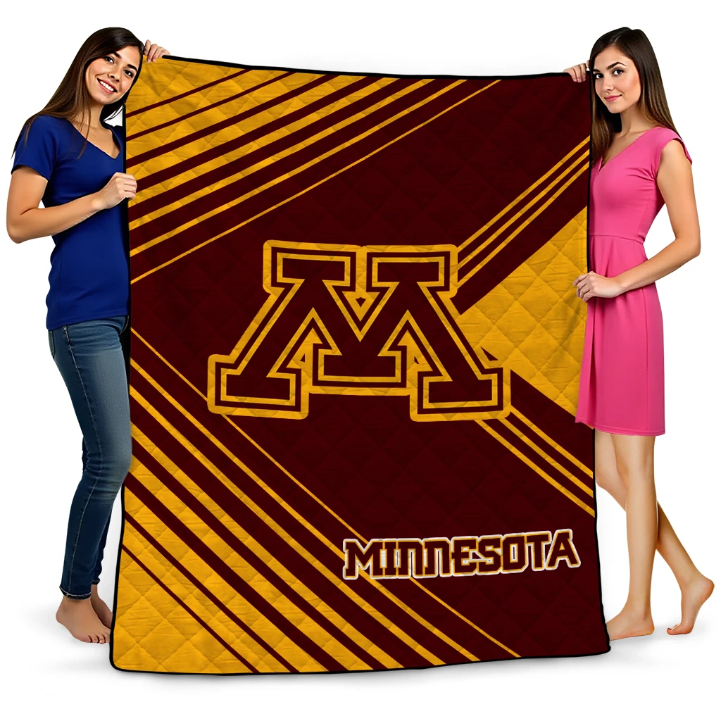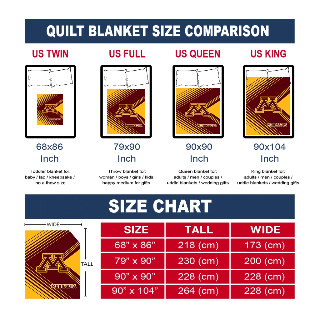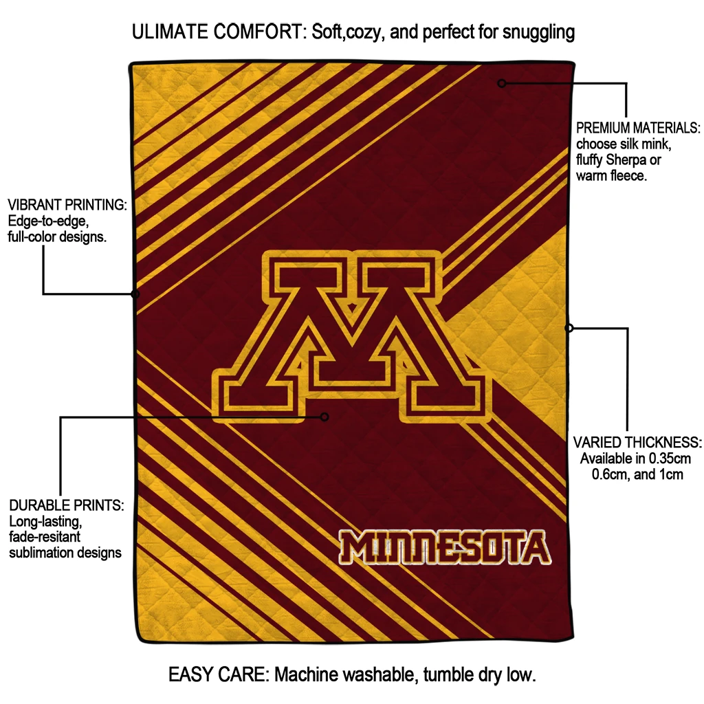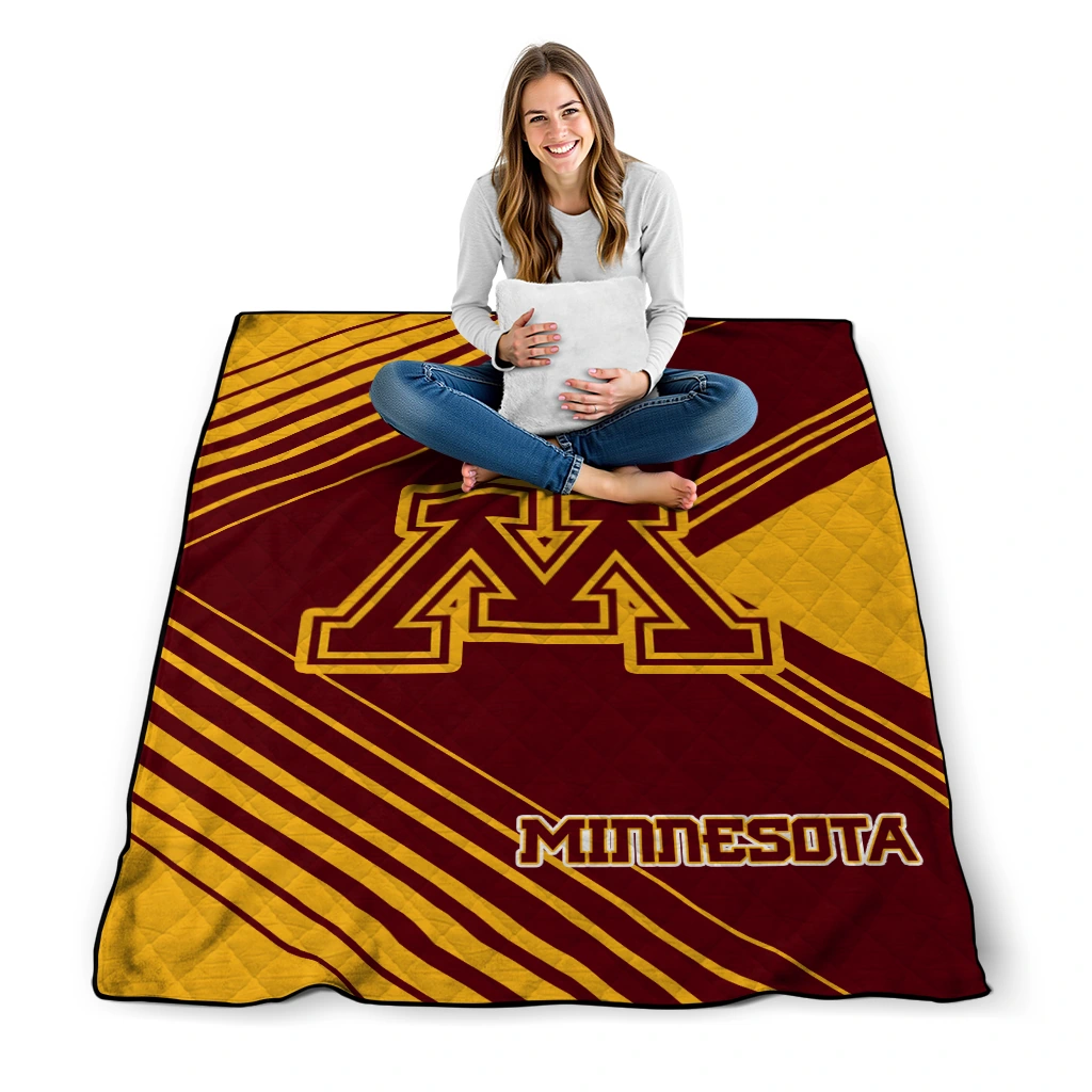 Wrap yourself in warmth and pride with the Minnesota Golden Gophers Arrow Layers Maroon Quilt Blanket from the Minnesota Golden Gophers Blankets collection at Yes That Blanket. Made from 100% premium quilting-weight polyester blended with a touch of microfiber, this quilt offers a smooth, soft finish you’ll love. Choose between two quilting styles—Stipple or Diagonal—and enjoy the comfort of a cotton-filled layer inside that adds extra coziness for every season. The border is available in classic black or white, giving your design a clean, timeless edge.