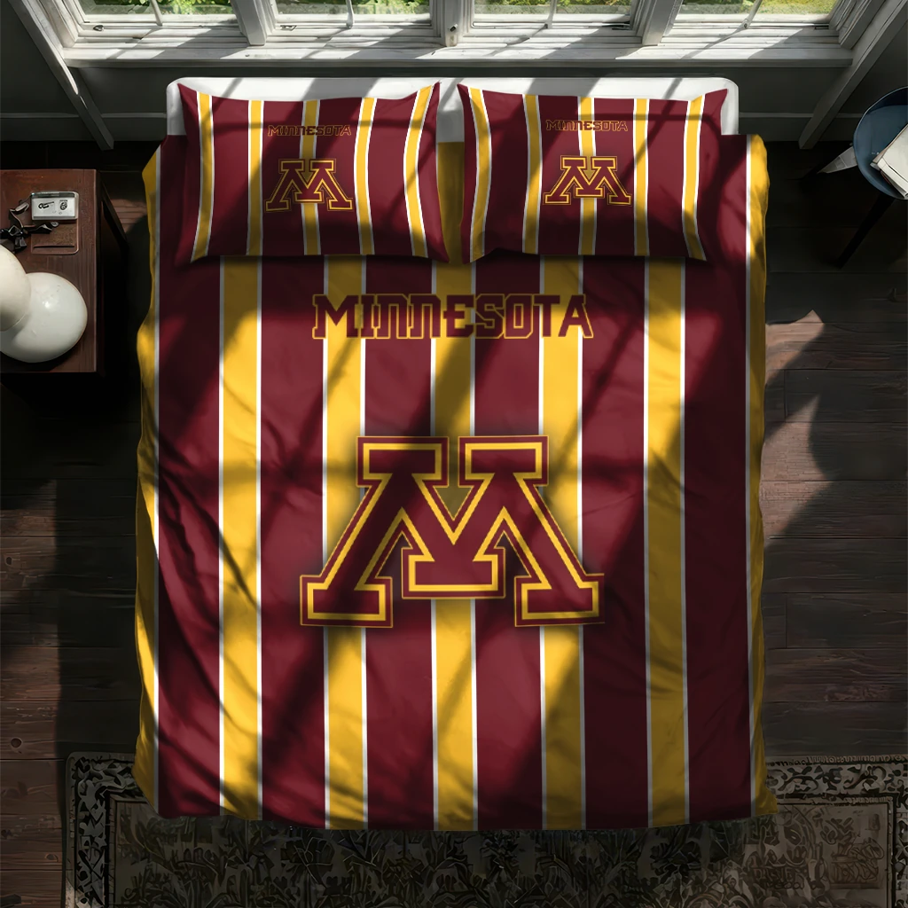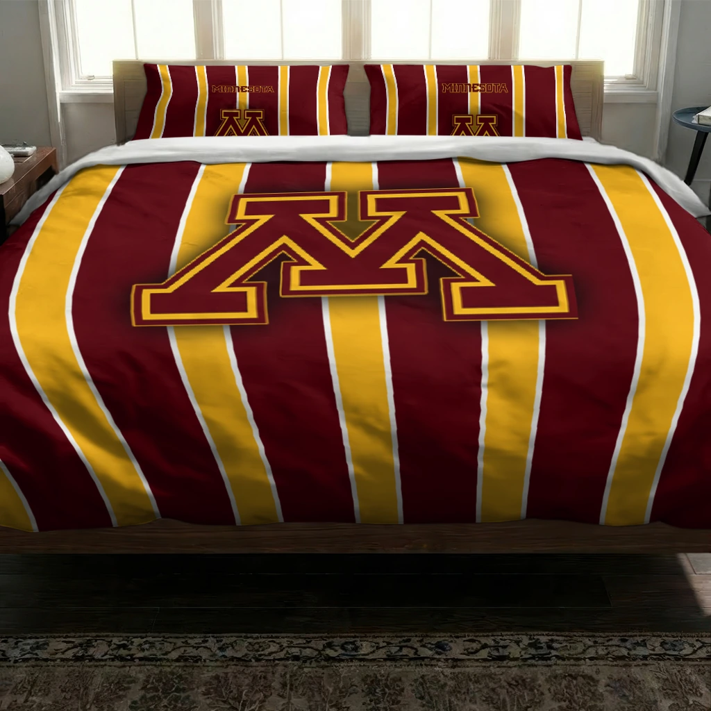 Minnesota Golden Gophers Bedding Set – Stripe Style Maroon Yellow