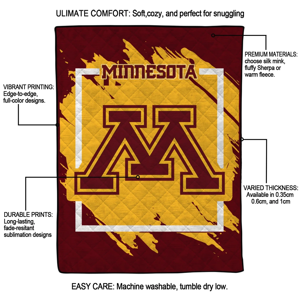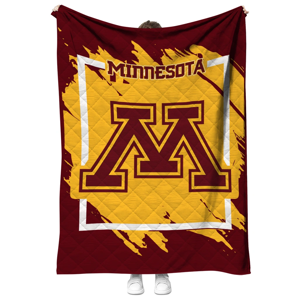Minnesota Golden Gophers Block Border Maroon Quilt Blanket