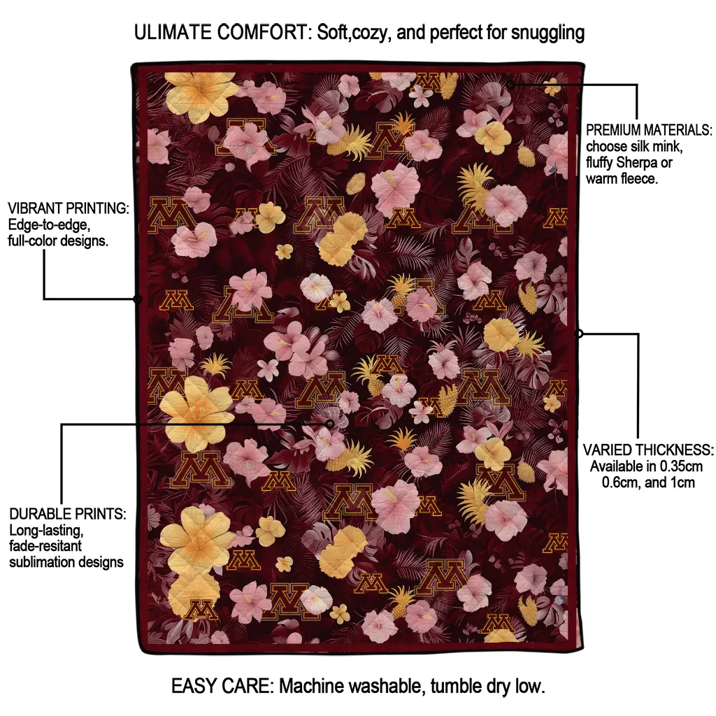 Minnesota Golden Gophers Hibiscus Foliage Maroon Quilt Blanket