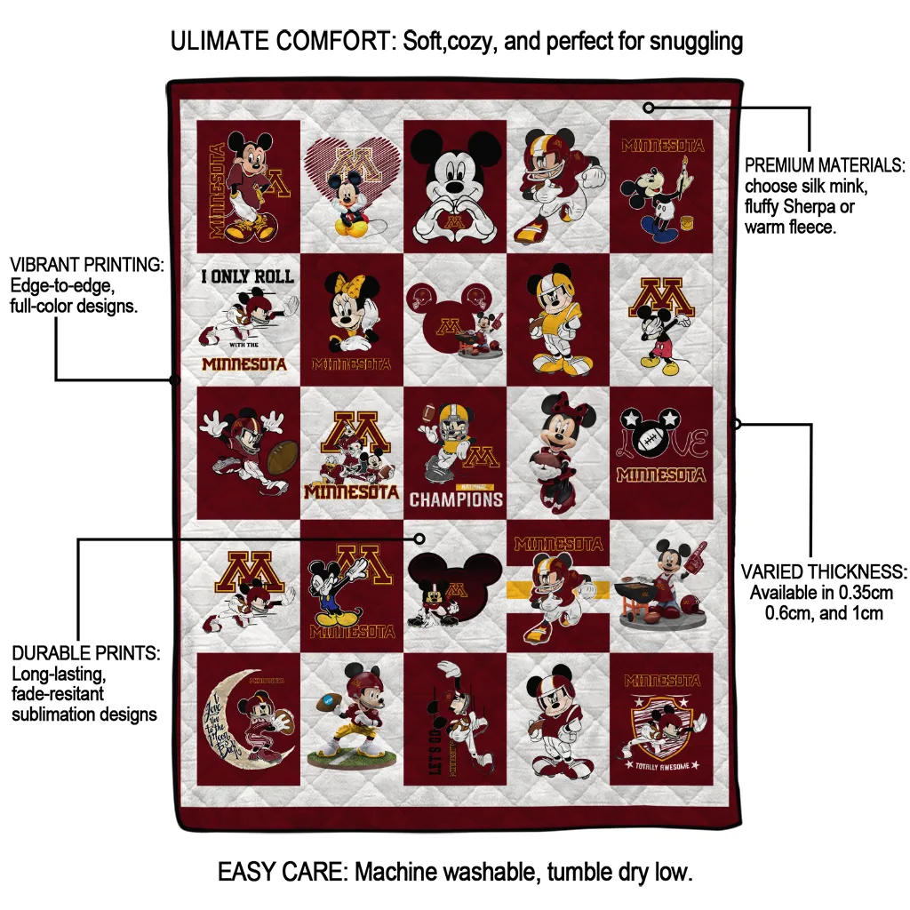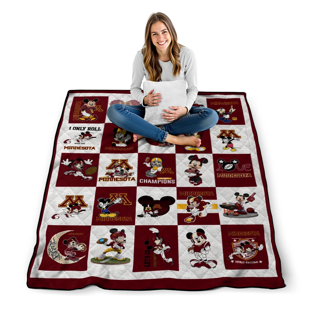 The Minnesota Golden Gophers Mickey Mouse Motif Maroon White Quilt Blanket is more than a blanket—it’s everyday comfort, thoughtfully made. Crafted from premium quilting fabric with a soft microfiber touch, it offers a smooth hand-feel and lasting coziness. Layered quilting with a cotton-filled core provides adaptable warmth across seasons while maintaining a clean, tailored look on your bed or sofa.