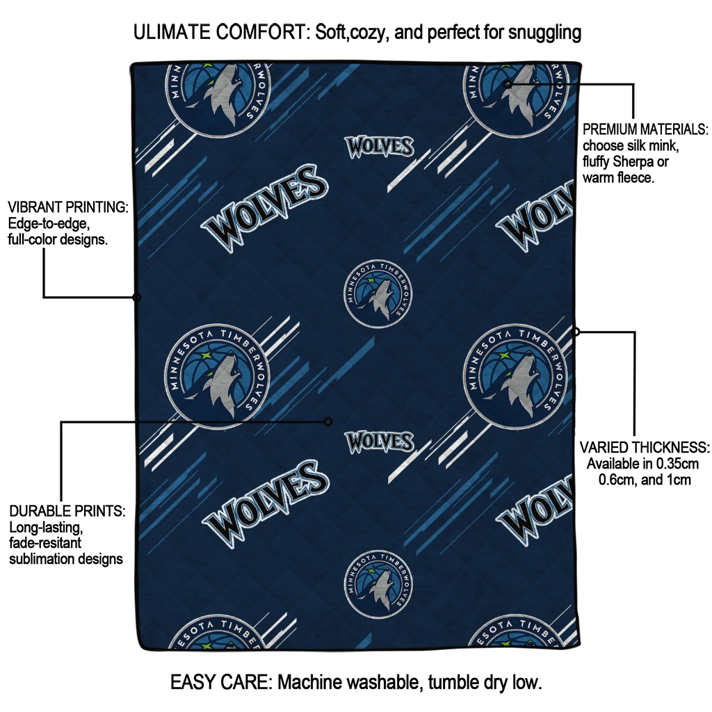 Minnesota Timberwolves Sketch Lines Midnight Blue Quilt Blanket