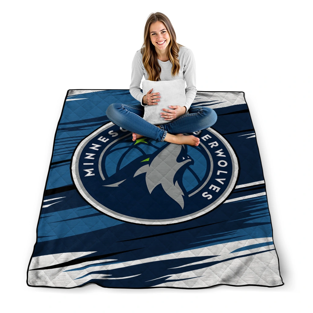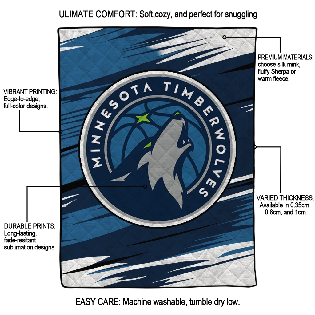 Minnesota Timberwolves Wild Lines Midnight Blue White Quilt Blanket