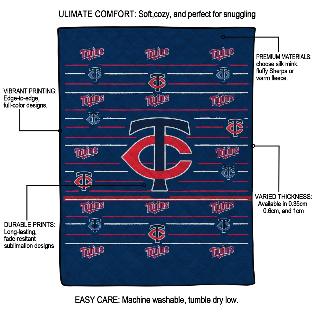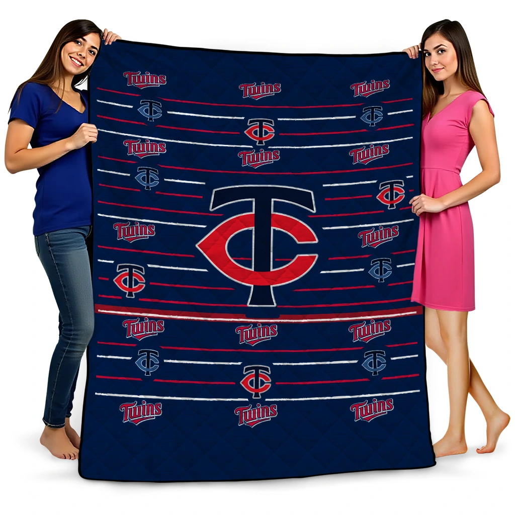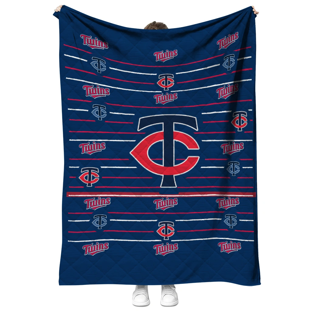 Wrap yourself in warmth and pride with the Minnesota Twins Handdrawn Stripes Navy Quilt Blanket from the Minnesota Twins Blankets collection at Yes That Blanket. Made from 100% premium quilting-weight polyester blended with a touch of microfiber, this quilt offers a smooth, soft finish you’ll love. Choose between two quilting styles—Stipple or Diagonal—and enjoy the comfort of a cotton-filled layer inside that adds extra coziness for every season. The border is available in classic black or white, giving your design a clean, timeless edge.