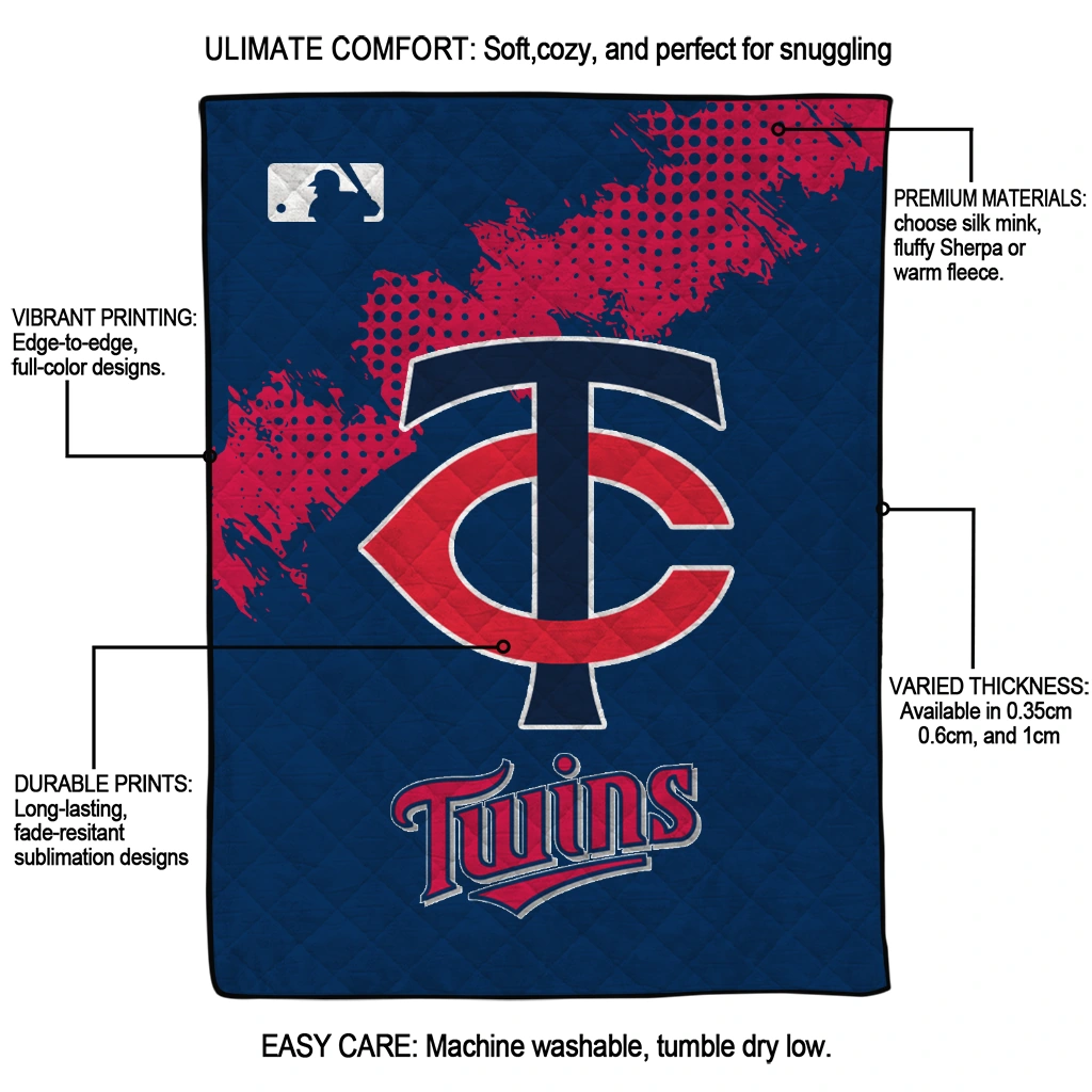 Wrap yourself in warmth and pride with the Minnesota Twins League Patch Navy Quilt Blanket from the Minnesota Twins Blankets collection at Yes That Blanket. Made from 100% premium quilting-weight polyester blended with a touch of microfiber, this quilt offers a smooth, soft finish you’ll love. Choose between two quilting styles—Stipple or Diagonal—and enjoy the comfort of a cotton-filled layer inside that adds extra coziness for every season. The border is available in classic black or white, giving your design a clean, timeless edge.