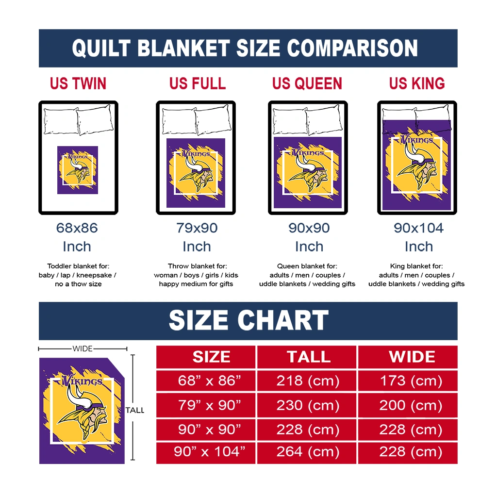 Wrap yourself in warmth and pride with the Minnesota Vikings Block Border Purple Quilt Blanket from the Minnesota Vikings Blankets collection at Yes That Blanket. Made from 100% premium quilting-weight polyester blended with a touch of microfiber, this quilt offers a smooth, soft finish you’ll love. Choose between two quilting styles—Stipple or Diagonal—and enjoy the comfort of a cotton-filled layer inside that adds extra coziness for every season. The border is available in classic black or white, giving your design a clean, timeless edge.