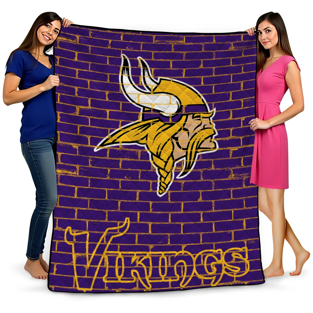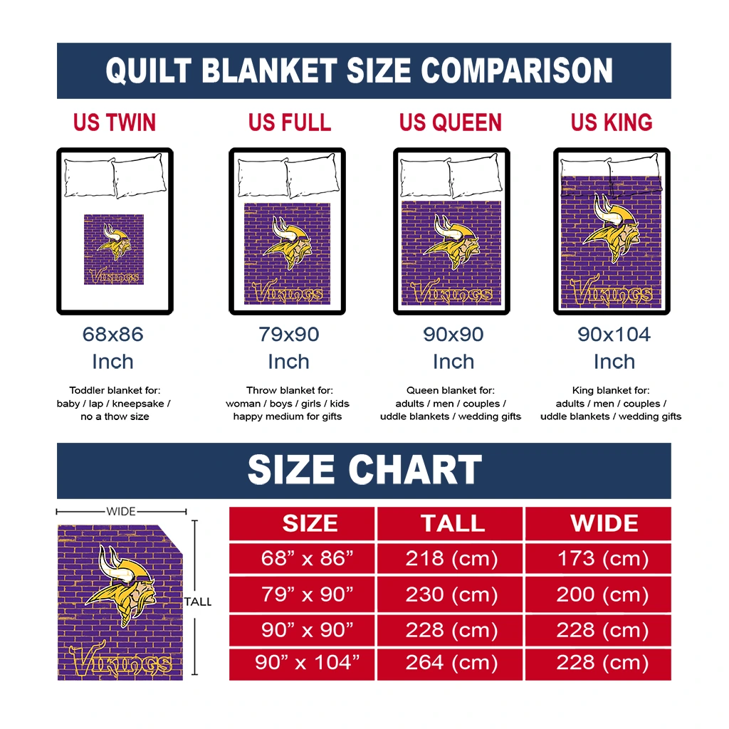 Wrap yourself in warmth and pride with the Minnesota Vikings Brick Grid Purple Quilt Blanket from the Minnesota Vikings Blankets collection at Yes That Blanket. Made from 100% premium quilting-weight polyester blended with a touch of microfiber, this quilt offers a smooth, soft finish you’ll love. Choose between two quilting styles—Stipple or Diagonal—and enjoy the comfort of a cotton-filled layer inside that adds extra coziness for every season. The border is available in classic black or white, giving your design a clean, timeless edge.