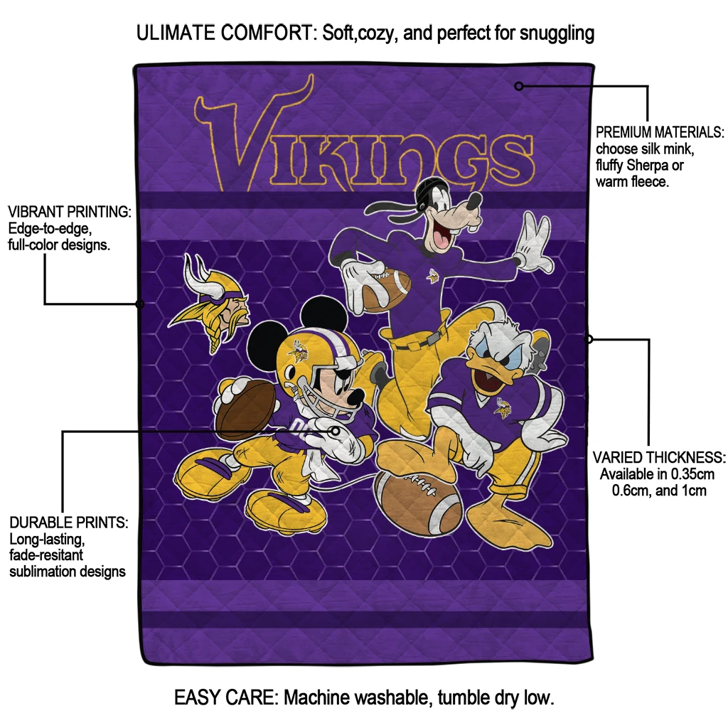 Minnesota Vikings Disney Football Purple Quilt Blanket