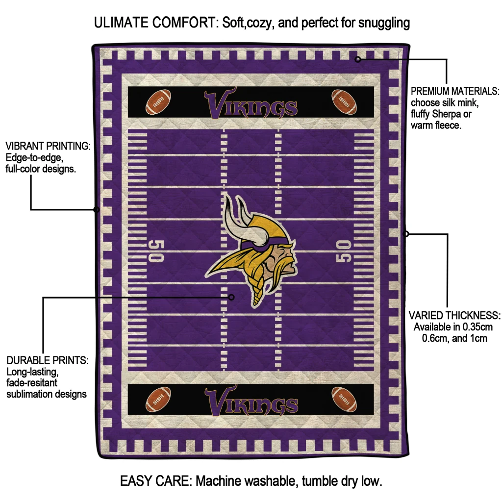 Minnesota Vikings Mickey Player Purple Quilt Blanket