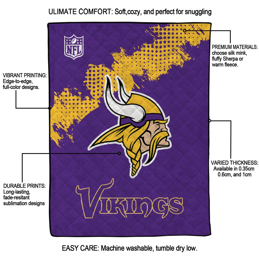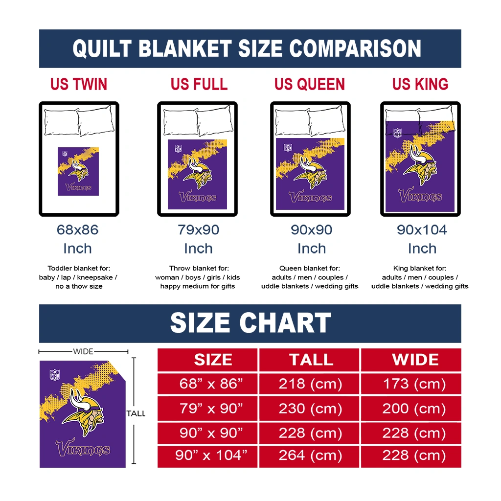 The Minnesota Vikings Shield Badge Purple Quilt Blanket is more than a blanket—it’s everyday comfort, thoughtfully made. Crafted from premium quilting fabric with a soft microfiber touch, it offers a smooth hand-feel and lasting coziness. Layered quilting with a cotton-filled core provides adaptable warmth across seasons while maintaining a clean, tailored look on your bed or sofa.