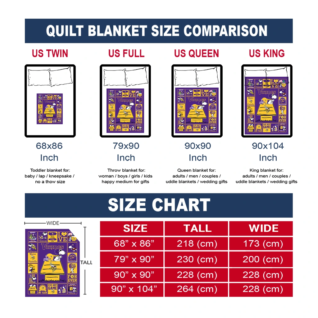 The Minnesota Vikings Snoopy Love Purple Quilt Blanket is more than a blanket—it’s everyday comfort, thoughtfully made. Crafted from premium quilting fabric with a soft microfiber touch, it offers a smooth hand-feel and lasting coziness. Layered quilting with a cotton-filled core provides adaptable warmth across seasons while maintaining a clean, tailored look on your bed or sofa.