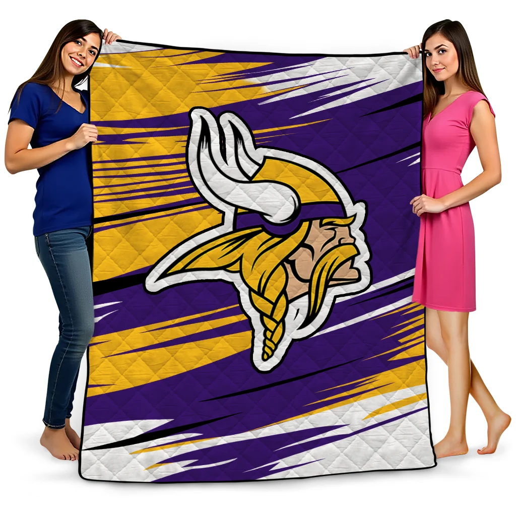 Wrap yourself in warmth and pride with the Minnesota Vikings Wild Lines Purple White Quilt Blanket from the Minnesota Vikings Blankets collection at Yes That Blanket. Made from 100% premium quilting-weight polyester blended with a touch of microfiber, this quilt offers a smooth, soft finish you’ll love. Choose between two quilting styles—Stipple or Diagonal—and enjoy the comfort of a cotton-filled layer inside that adds extra coziness for every season. The border is available in classic black or white, giving your design a clean, timeless edge.