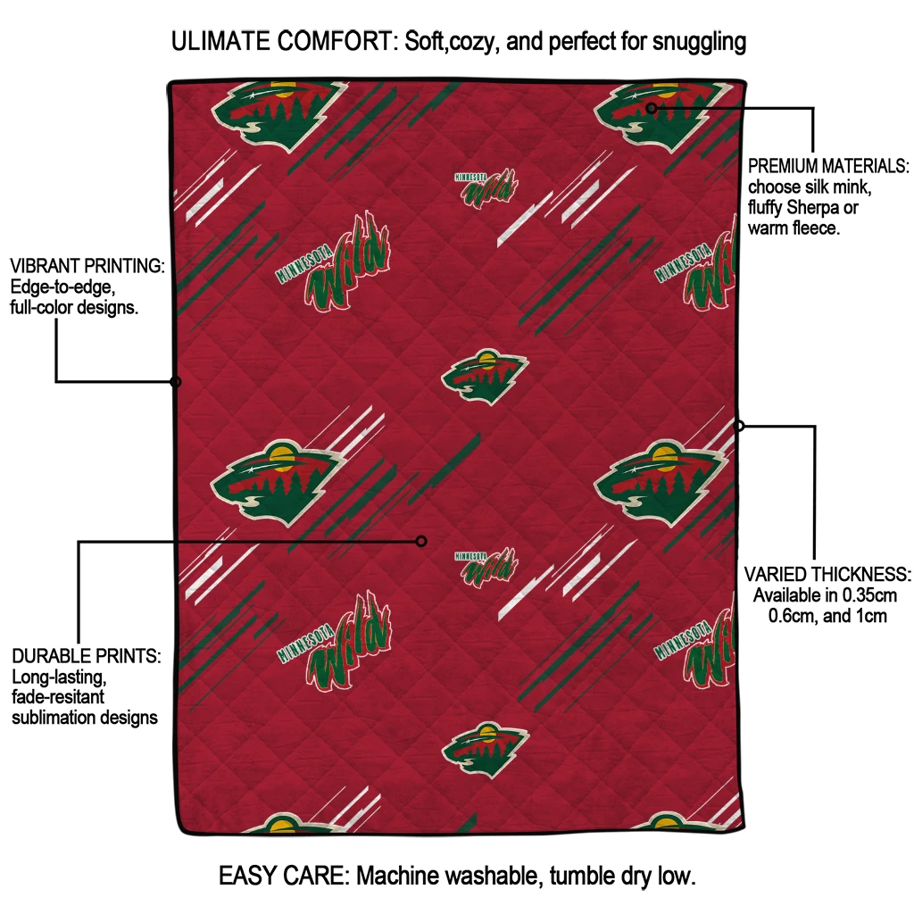 The Minnesota Wild Sketch Lines Red Quilt Blanket is more than a blanket—it’s everyday comfort, thoughtfully made. Crafted from premium quilting fabric with a soft microfiber touch, it offers a smooth hand-feel and lasting coziness. Layered quilting with a cotton-filled core provides adaptable warmth across seasons while maintaining a clean, tailored look on your bed or sofa.