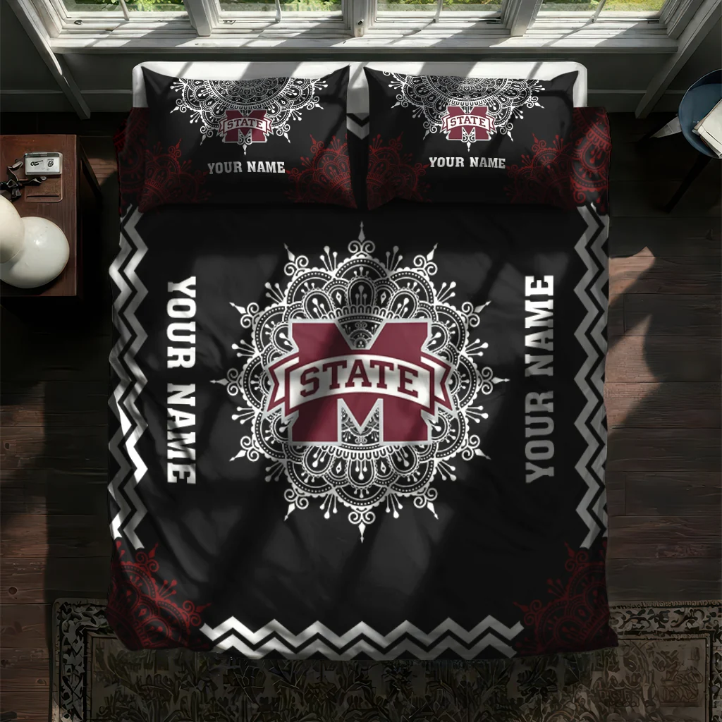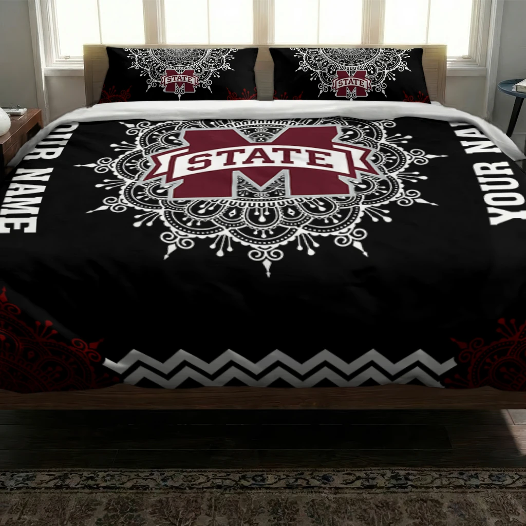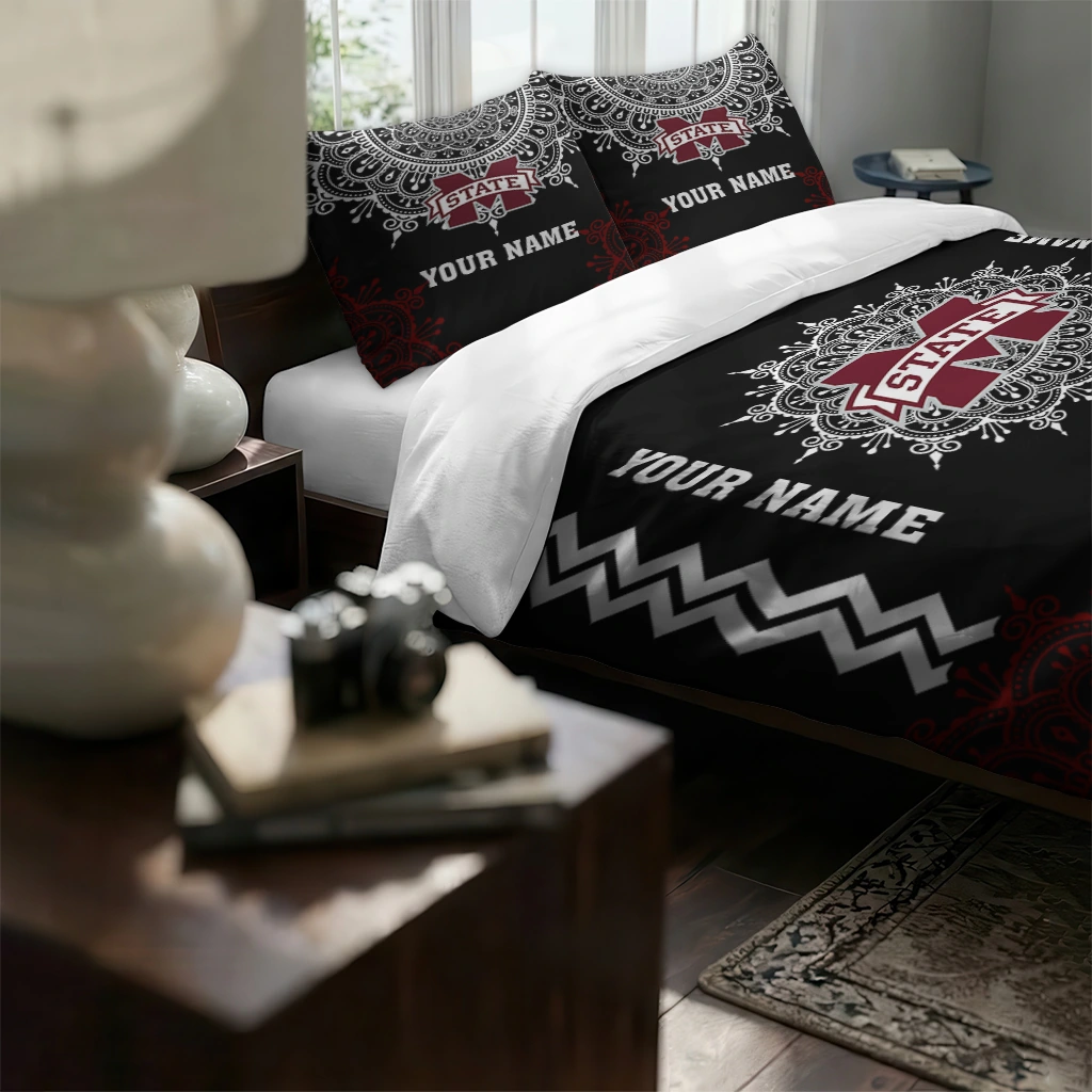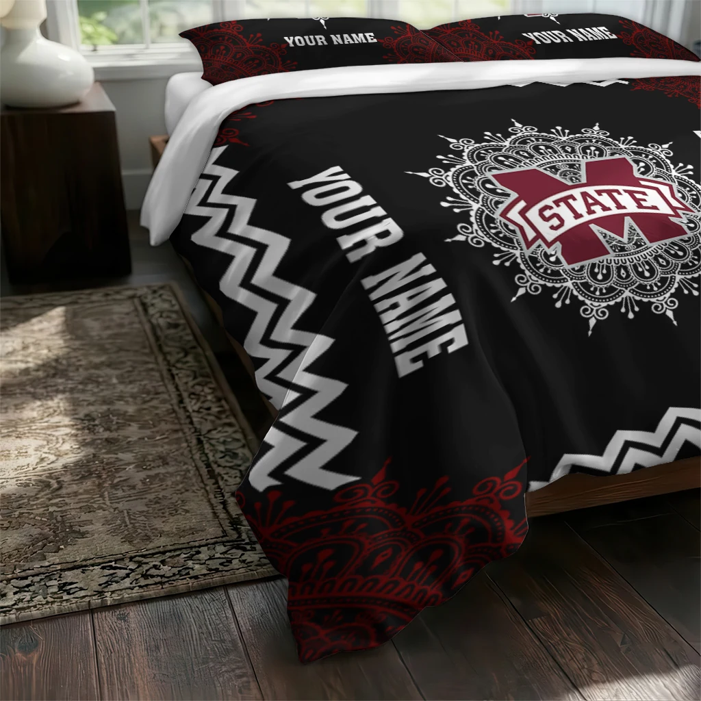 Mississippi State Bulldogs Bedding Set – Custom Mandala Lacework Black White