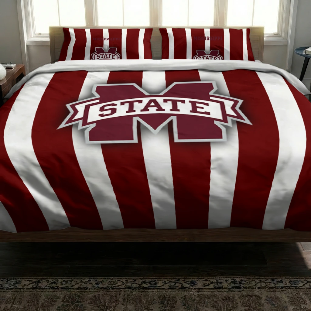 Mississippi State Bulldogs Bedding Set – Stripe Style Red White