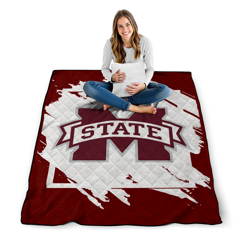 Mississippi State Bulldogs Block Border Maroon Quilt Blanket