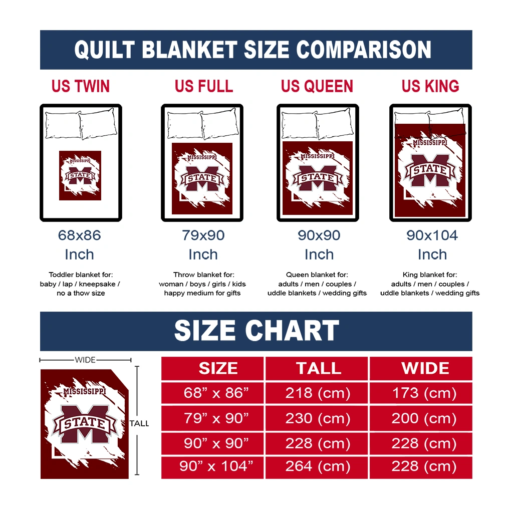 Wrap yourself in warmth and pride with the Mississippi State Bulldogs Block Border Maroon Quilt Blanket from the Mississippi State Bulldogs Blankets collection at Yes That Blanket. Made from 100% premium quilting-weight polyester blended with a touch of microfiber, this quilt offers a smooth, soft finish you’ll love. Choose between two quilting styles—Stipple or Diagonal—and enjoy the comfort of a cotton-filled layer inside that adds extra coziness for every season. The border is available in classic black or white, giving your design a clean, timeless edge.