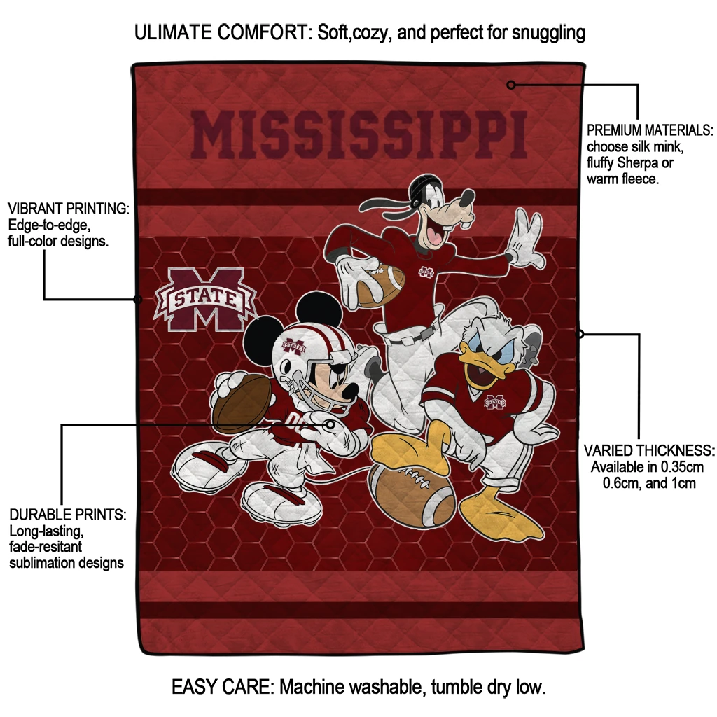 Mississippi State Bulldogs Disney Football Maroon Quilt Blanket