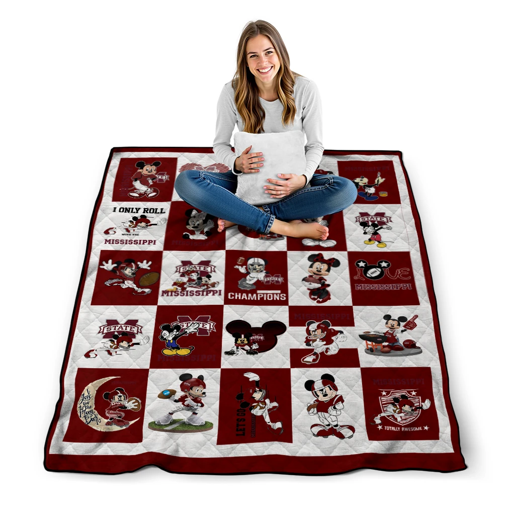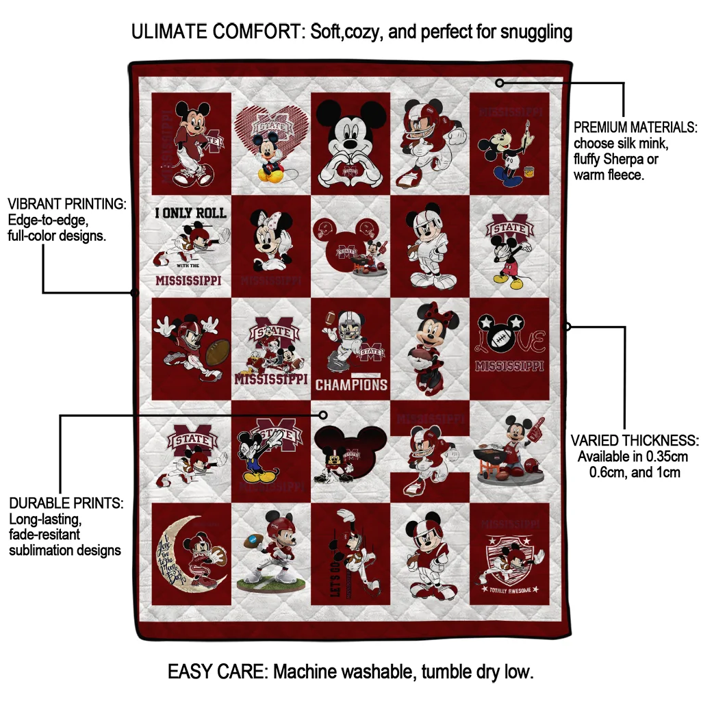 Mississippi State Bulldogs Mickey Mouse Motif Maroon White Quilt Blanket