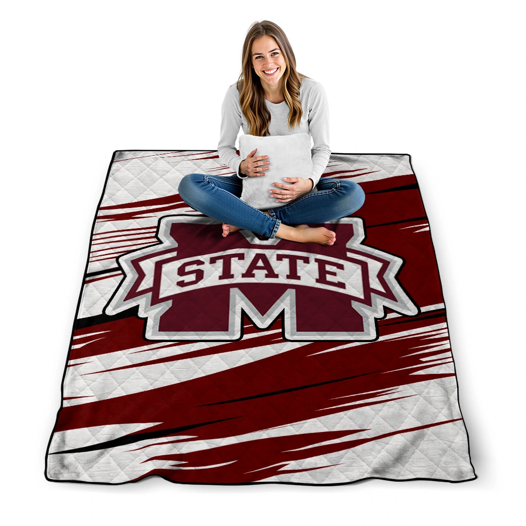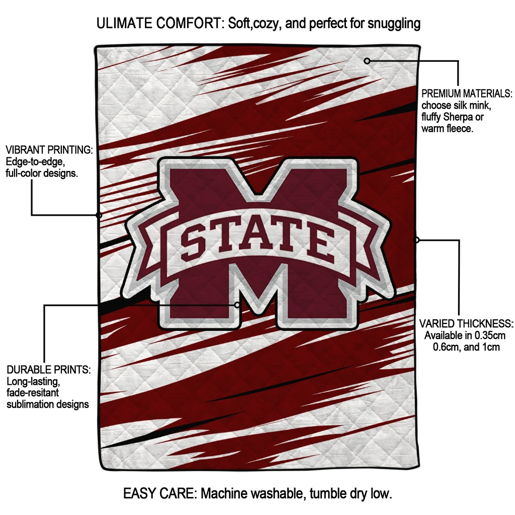 Mississippi State Bulldogs Wild Lines Maroon White Quilt Blanket