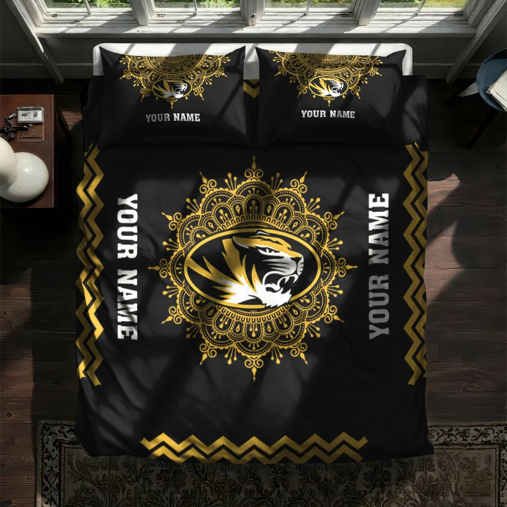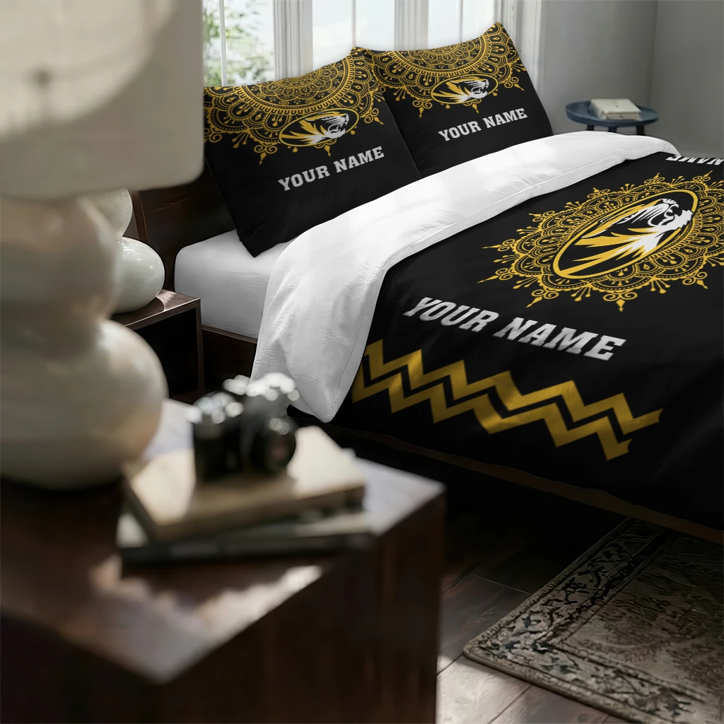 Missouri Tigers Bedding Set – Customized Mandala Lacework Black Yellow