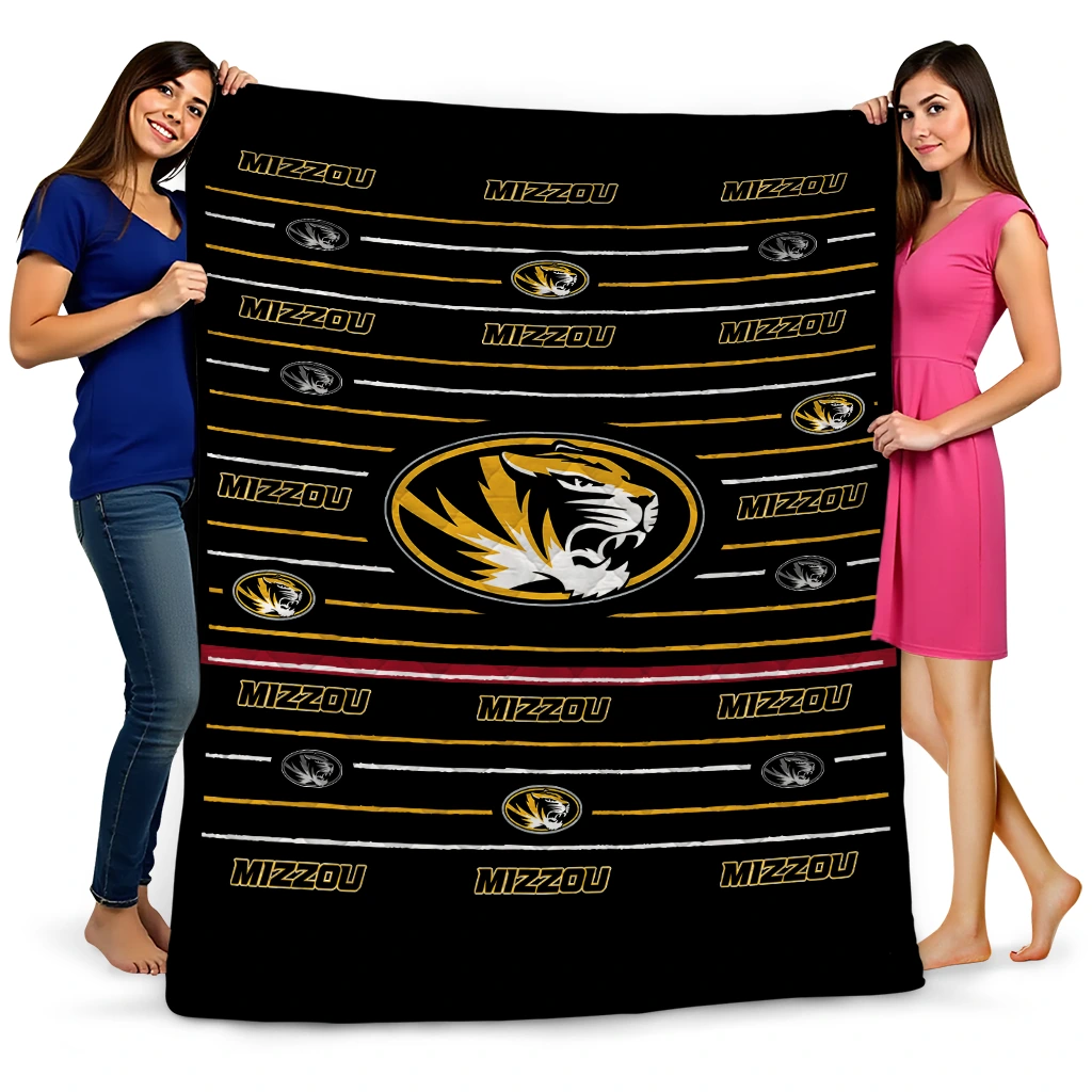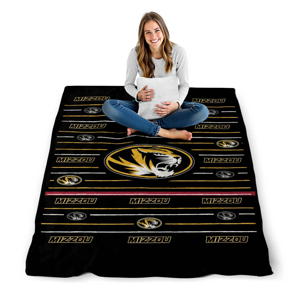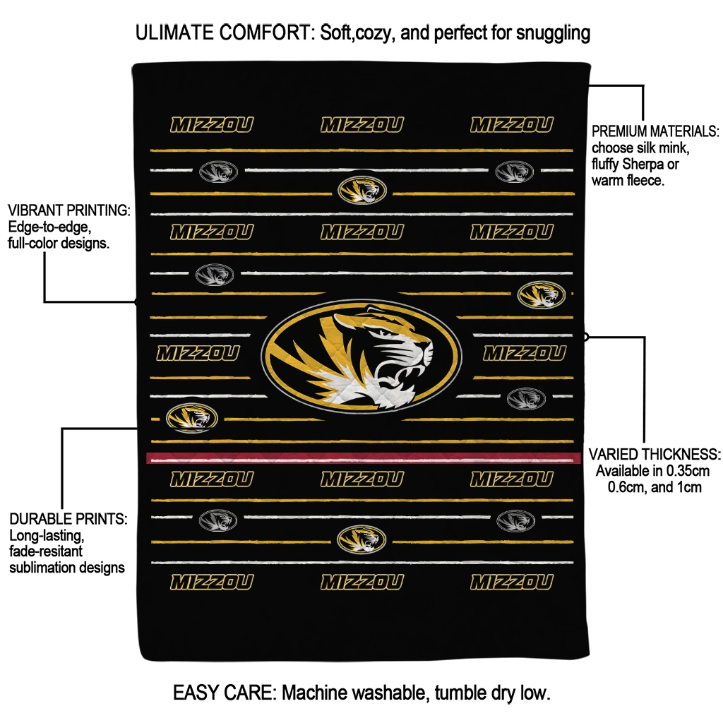 Wrap yourself in warmth and pride with the Missouri Tigers Handdrawn Stripes Black Quilt Blanket from the Missouri Tigers Blankets collection at Yes That Blanket. Made from 100% premium quilting-weight polyester blended with a touch of microfiber, this quilt offers a smooth, soft finish you’ll love. Choose between two quilting styles—Stipple or Diagonal—and enjoy the comfort of a cotton-filled layer inside that adds extra coziness for every season. The border is available in classic black or white, giving your design a clean, timeless edge.