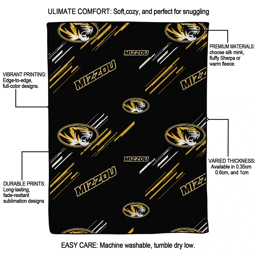 Missouri Tigers Sketch Lines Black Quilt Blanket