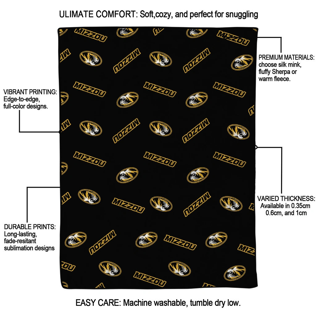 Wrap yourself in warmth and pride with the Missouri Tigers Solid Classic Black Quilt Blanket from the Missouri Tigers Blankets collection at Yes That Blanket. Made from 100% premium quilting-weight polyester blended with a touch of microfiber, this quilt offers a smooth, soft finish you’ll love. Choose between two quilting styles—Stipple or Diagonal—and enjoy the comfort of a cotton-filled layer inside that adds extra coziness for every season. The border is available in classic black or white, giving your design a clean, timeless edge.