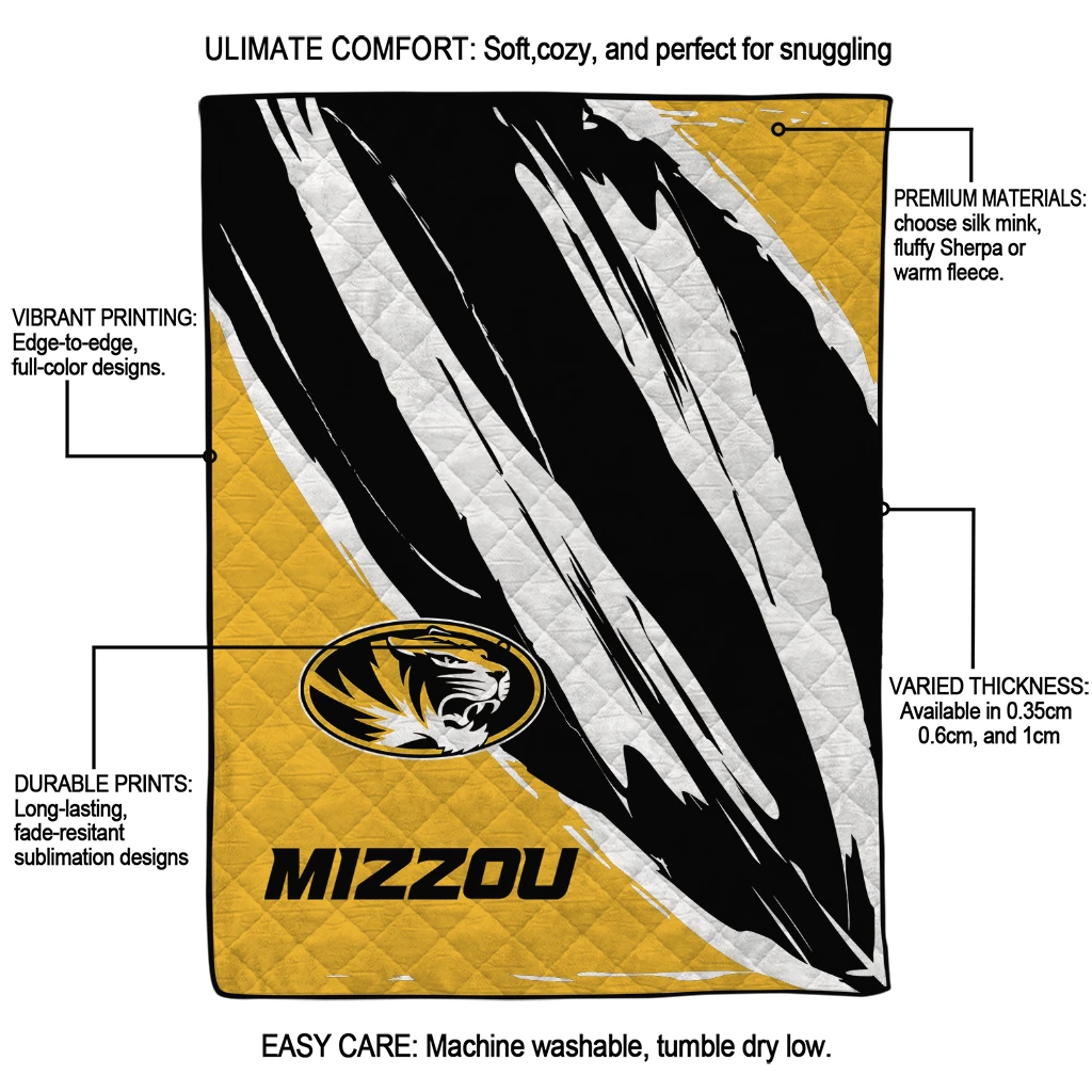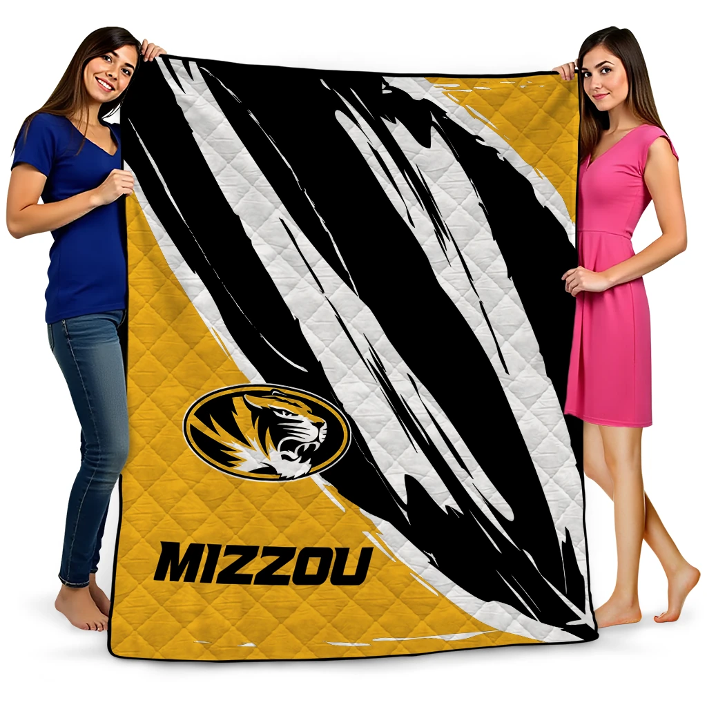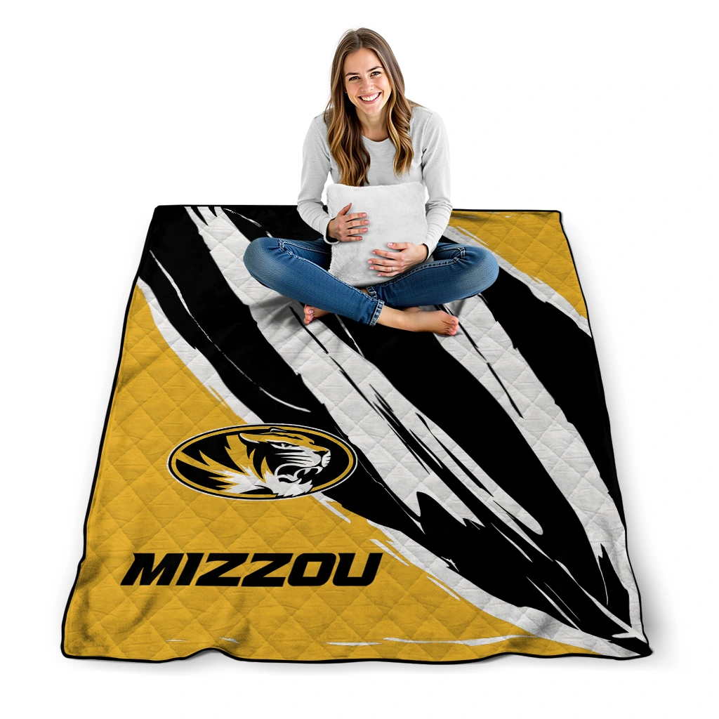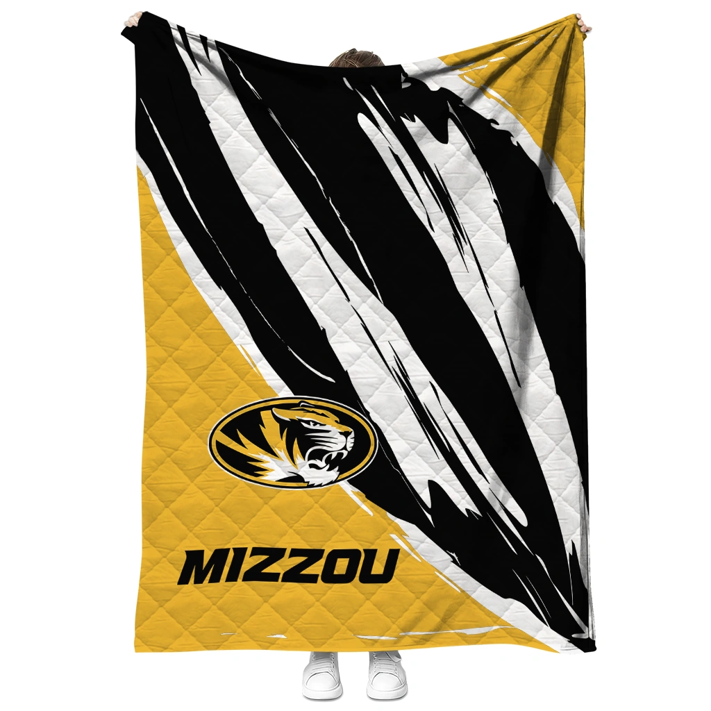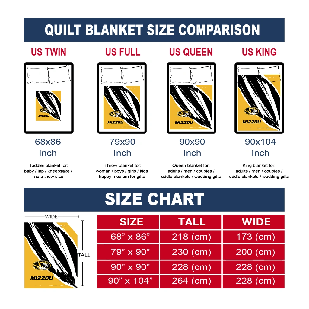 Wrap yourself in warmth and pride with the Missouri Tigers Stroke Art Black White Quilt Blanket from the Missouri Tigers Blankets collection at Yes That Blanket. Made from 100% premium quilting-weight polyester blended with a touch of microfiber, this quilt offers a smooth, soft finish you’ll love. Choose between two quilting styles—Stipple or Diagonal—and enjoy the comfort of a cotton-filled layer inside that adds extra coziness for every season. The border is available in classic black or white, giving your design a clean, timeless edge.