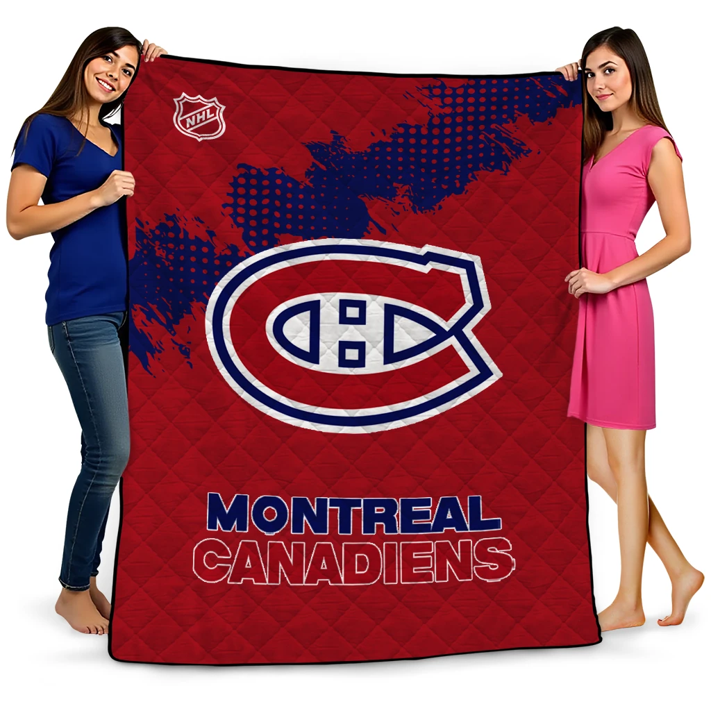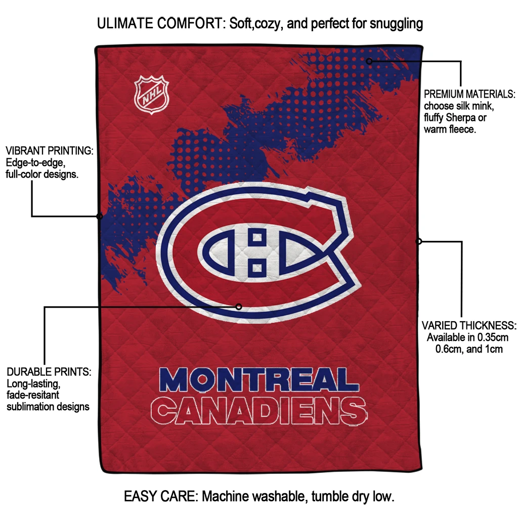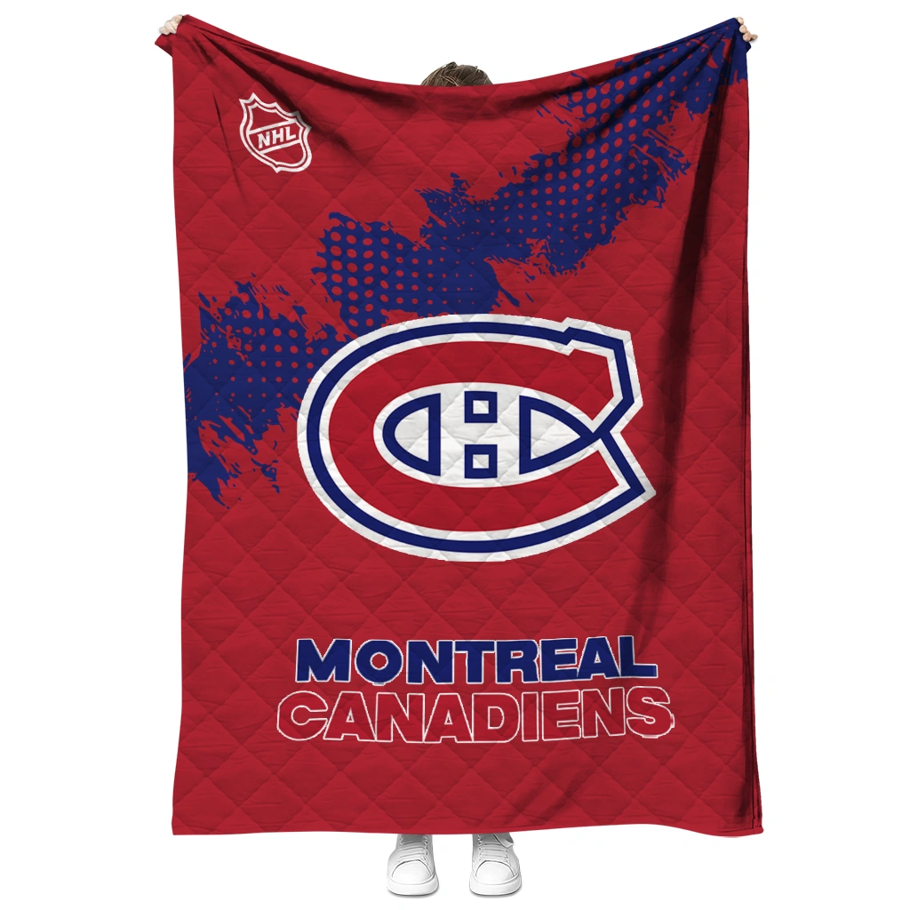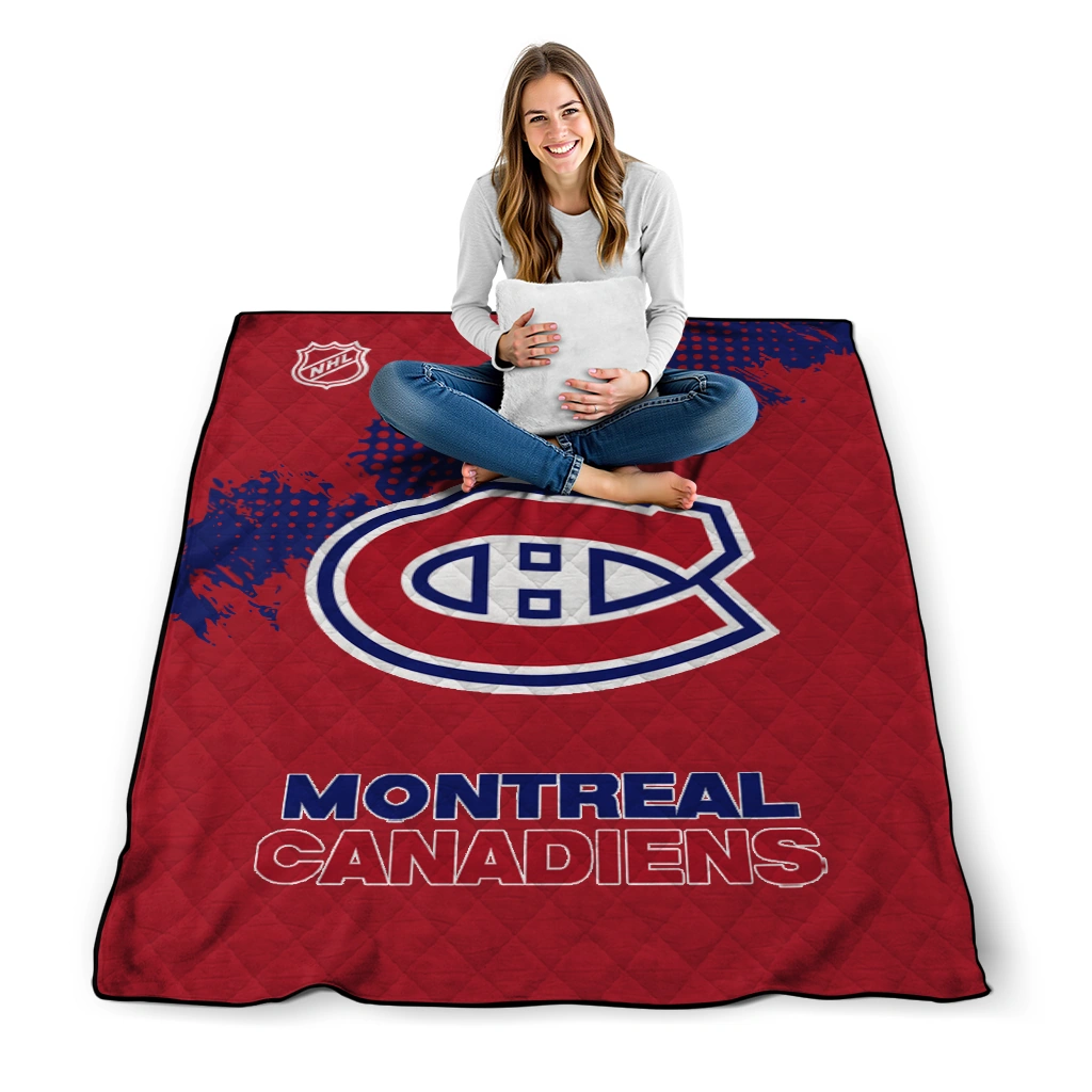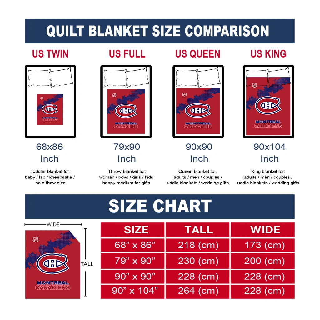 Wrap yourself in warmth and pride with the Montreal Canadiens NHL Shield Red Quilt Blanket from the Montreal Canadiens Blankets collection at Yes That Blanket. Made from 100% premium quilting-weight polyester blended with a touch of microfiber, this quilt offers a smooth, soft finish you’ll love. Choose between two quilting styles—Stipple or Diagonal—and enjoy the comfort of a cotton-filled layer inside that adds extra coziness for every season. The border is available in classic black or white, giving your design a clean, timeless edge.