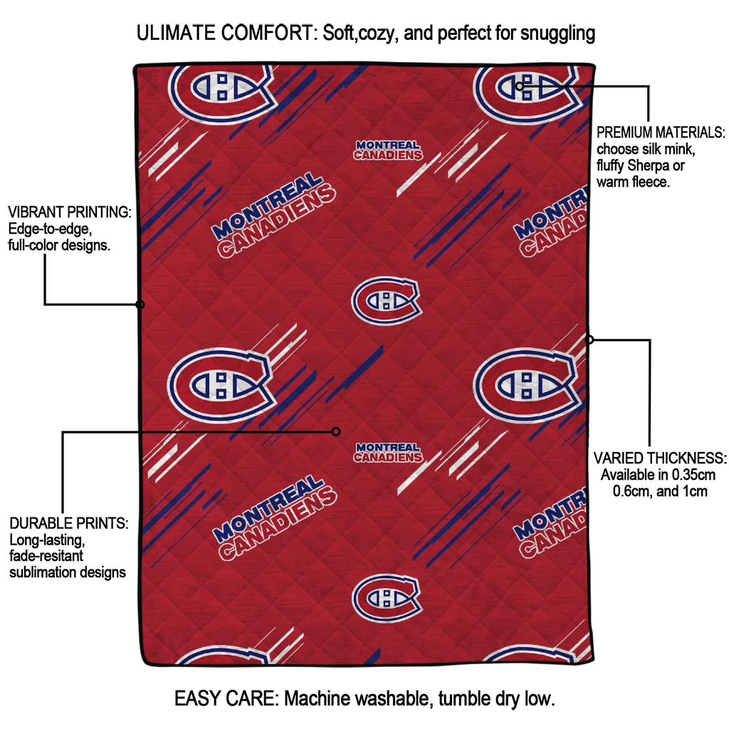 Wrap yourself in warmth and pride with the Montreal Canadiens Sketch Lines Red Quilt Blanket from the Montreal Canadiens Blankets collection at Yes That Blanket. Made from 100% premium quilting-weight polyester blended with a touch of microfiber, this quilt offers a smooth, soft finish you’ll love. Choose between two quilting styles—Stipple or Diagonal—and enjoy the comfort of a cotton-filled layer inside that adds extra coziness for every season. The border is available in classic black or white, giving your design a clean, timeless edge.