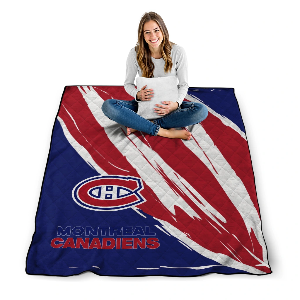 Wrap yourself in warmth and pride with the Montreal Canadiens Stroke Art Red White Quilt Blanket from the Montreal Canadiens Blankets collection at Yes That Blanket. Made from 100% premium quilting-weight polyester blended with a touch of microfiber, this quilt offers a smooth, soft finish you’ll love. Choose between two quilting styles—Stipple or Diagonal—and enjoy the comfort of a cotton-filled layer inside that adds extra coziness for every season. The border is available in classic black or white, giving your design a clean, timeless edge.