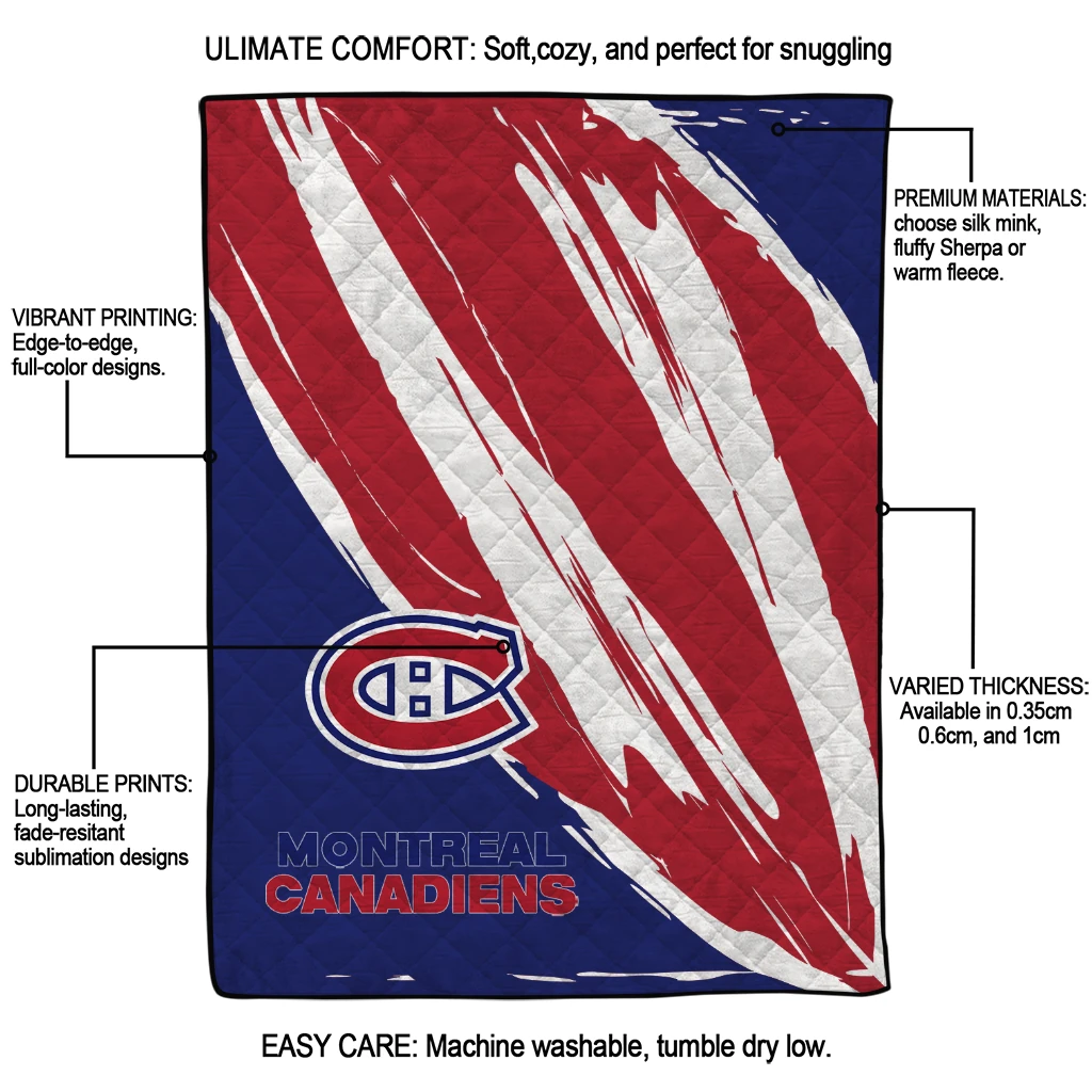 The Montreal Canadiens Stroke Art Red White Quilt Blanket is more than a blanket—it’s everyday comfort, thoughtfully made. Crafted from premium quilting fabric with a soft microfiber touch, it offers a smooth hand-feel and lasting coziness. Layered quilting with a cotton-filled core provides adaptable warmth across seasons while maintaining a clean, tailored look on your bed or sofa.