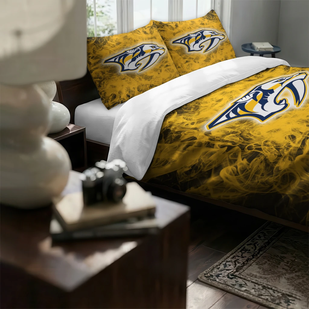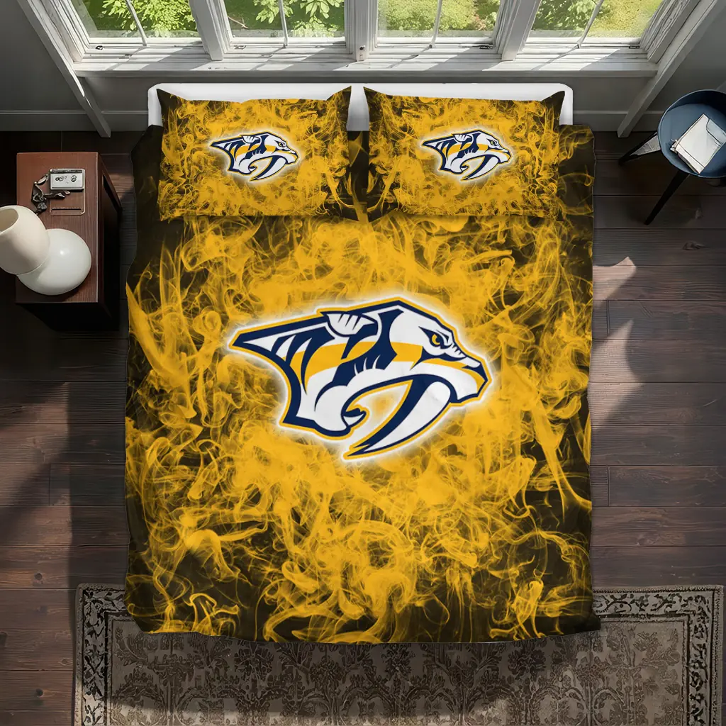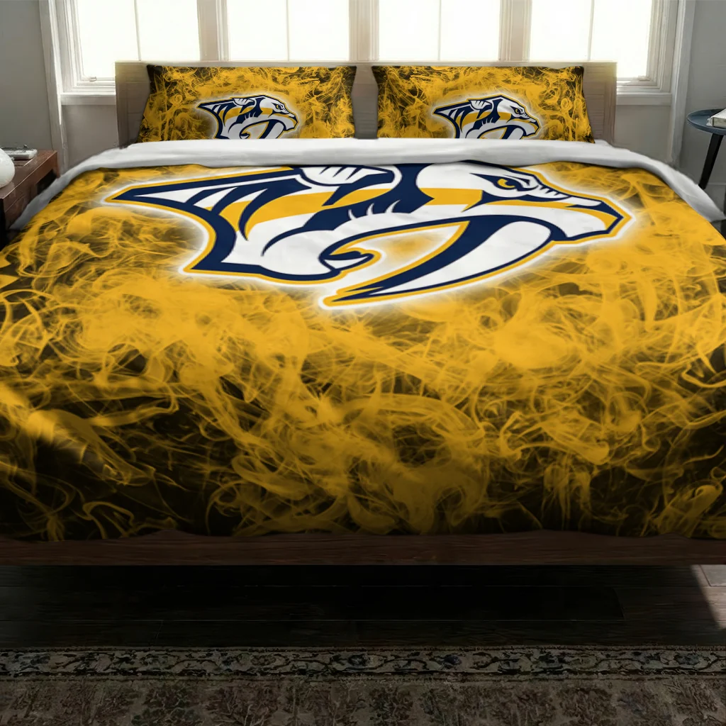 The Nashville Predators Bedding Set – Red Mist Yellow Black makes your room feel complete, warm, and overflowing with team pride. Designed for true fans, this bedding set from the Nashville Predators Bedding Sets collection at Yes That Blanket turns your sanctuary into a cozy retreat where sport style meets ultimate relaxation. Experience the perfect blend of comfort and passion every night with a finish so soft, you’ll never want to leave.